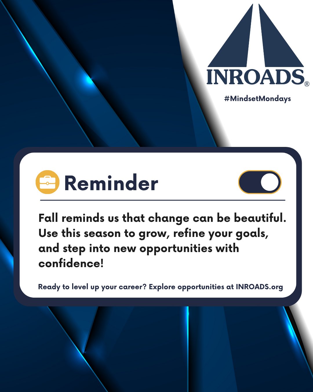 INROADS, Inc. @INROADS · Oct 27, 2025 Change is in the air 🍂—and just like the season, growth looks good on you! Learn more about how you can grow with INROADS and take your next step toward success. ➡️ INROADS.org #collegeprogram #highschoolprogram #stuentprogram #nonprofito 22
