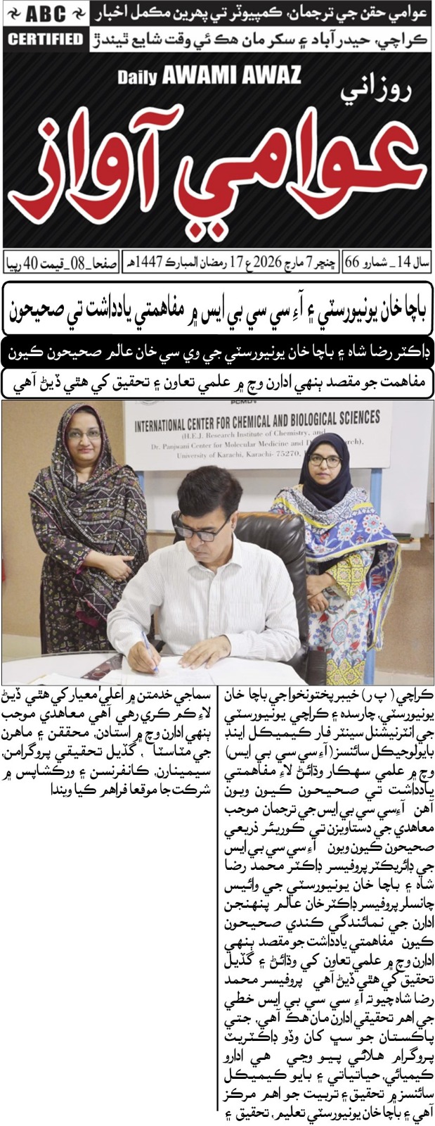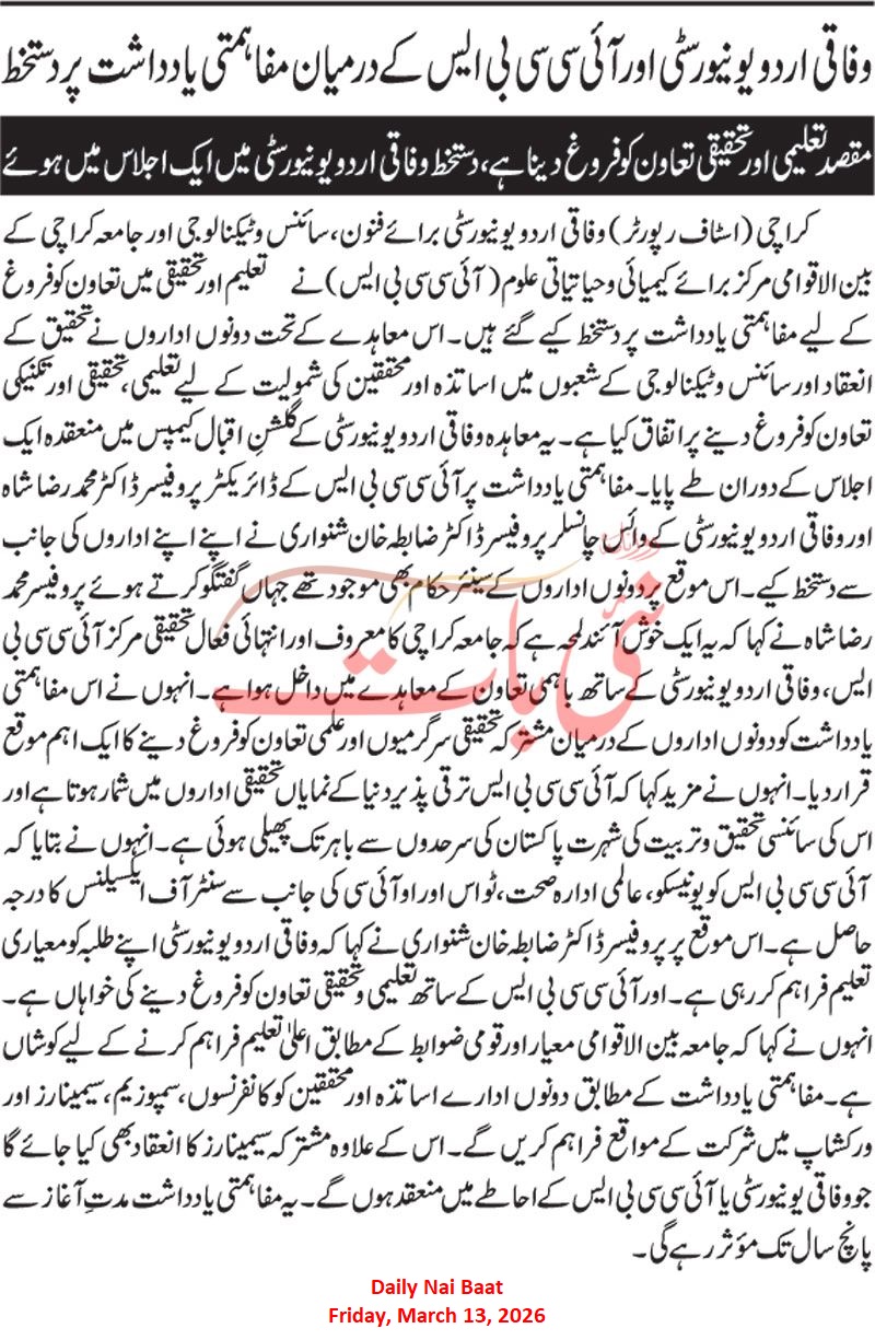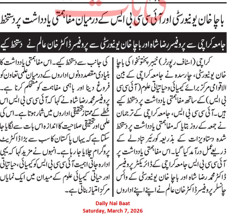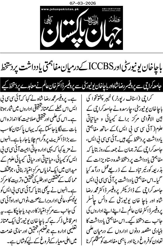 KARACHI - The International Centre for Chemical and Biological Sciences (ICCBS), University of Karachi, has an-nounced its largest