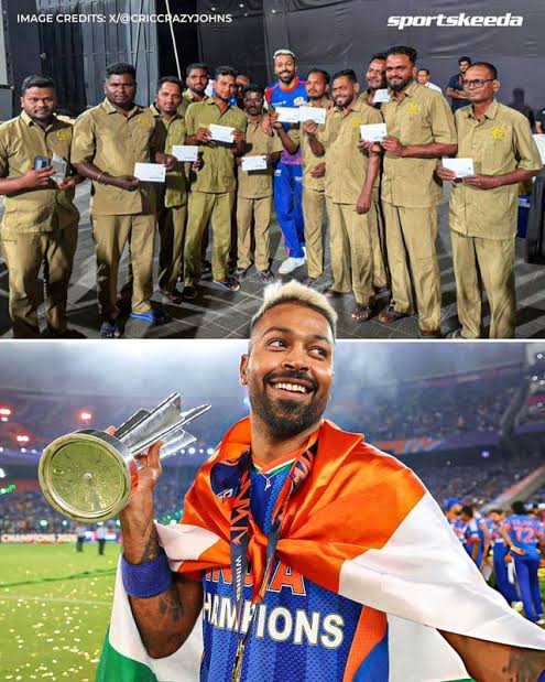 हार्दिक पांड्या ग्राउंड स्टाफ को 10 10 लाख रुपए बांट रहा है, करोड़ो की गाड़ियां खरीद रहा है.