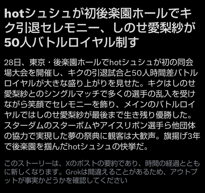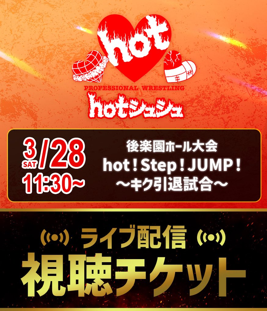 ラ ン バ @JACKguillotine_ · 7h いち早く田村様のケッテー!! に気付いてちゃんとポーズする選手権 優勝は私ですね🏆️ #prhot #ignite hotシュシュ《公式》 #prhot @info_hot0514 · 12h hotシュシュ後楽園ホール大会 #3月28日hotシュシュ後楽園 たくさんのご声援ありがとうございました ≪インターネット配信(ネットチケット制)≫ ■販売及びアーカイブ視聴期限 2026年4月7日 23時59分まで ■ICERIBBON LIVE iceribbonlive.ctpfs.jp/store ◆チケット:4,000円 #prhot 4 11 376