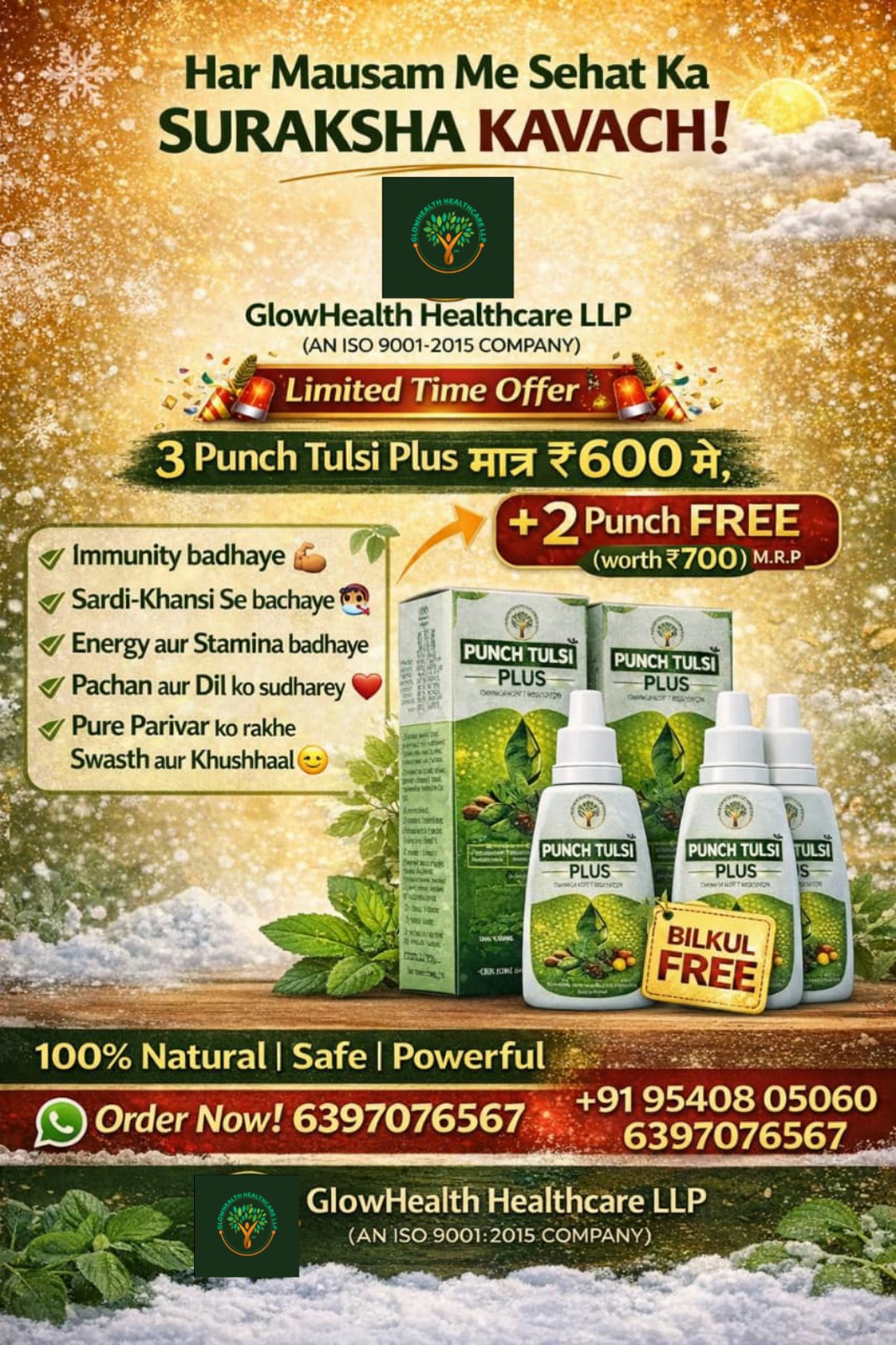 🌿 *हर मौसम में इम्यूनिटी का भरोसा! 💪 GLOW HEALTH PUNCH TULSI PLUS*