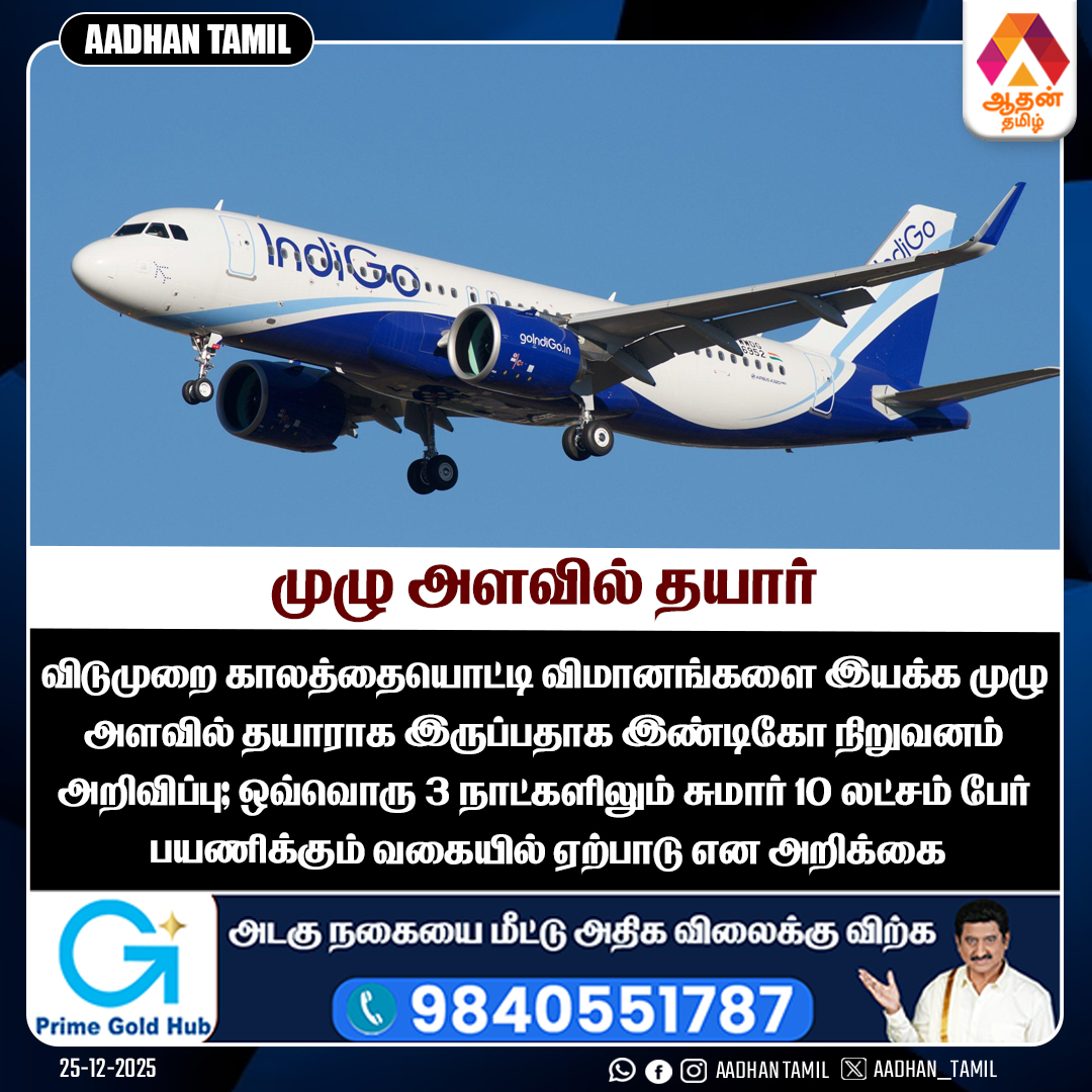 முழு வீச்சில் 2,200+ விமானங்களுடன் சேவை - இண்டிகோ அறிவிப்பு அண்மையில் இண்டிகோ நிறுவனத்தின் நூற்றுக்கணக்கான விமானங்களின் சேவைகள் ரத்தானதால் மக்கள் பெரிதும் பாதிக