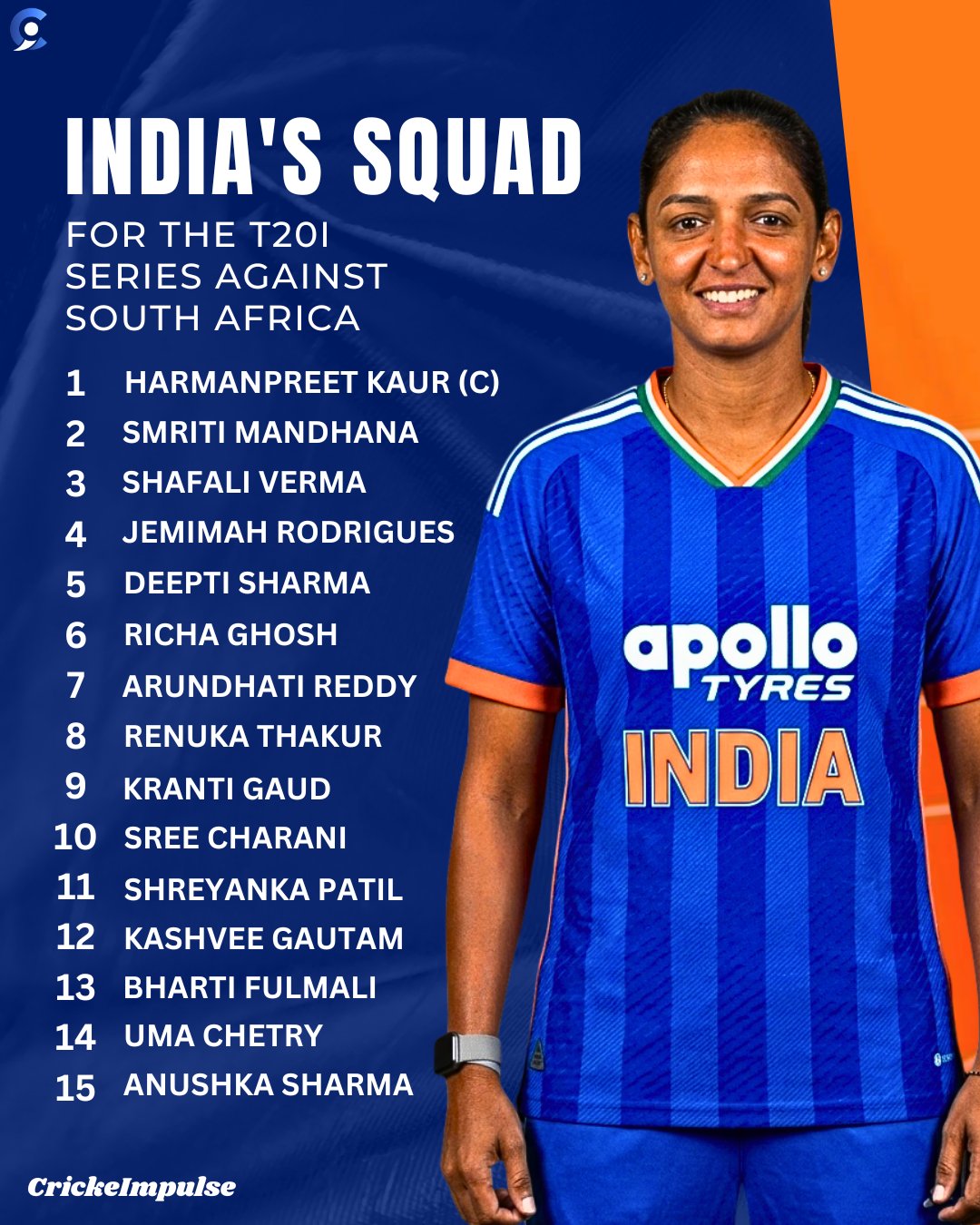 From etvbharat.comCricket News: India have announced a 15-member squad led by Harmanpreet Kaur for the upcoming T20I series against South Africa Women's Cricket Team, starting April .