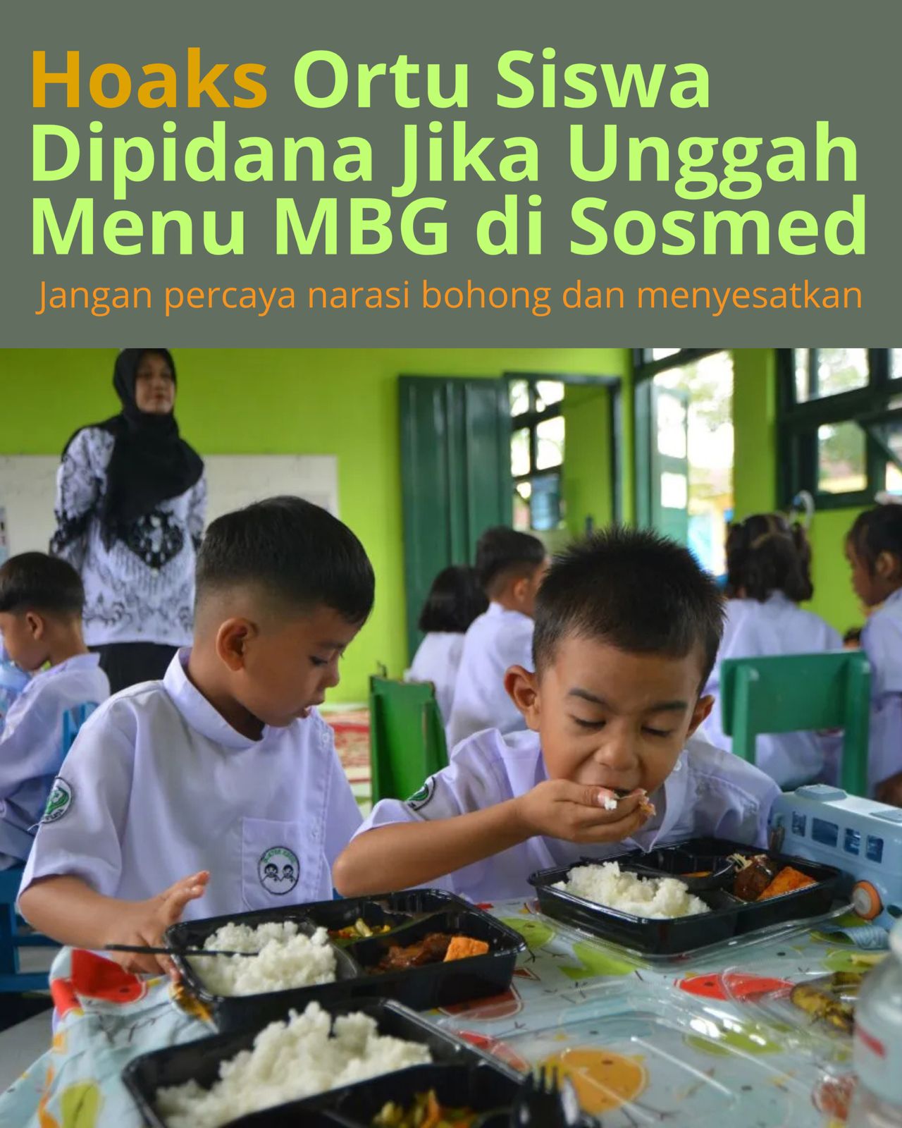 Dapat kabar kalau posting foto makan siang gratis bisa berujung penjara? Itu info menyesatkan! Pemerintah justru mendukung keterbukaan informasi agar kita semua bisa memantau kualitas gizi anak-anak kita. #InfoValid#LiterasiDigital