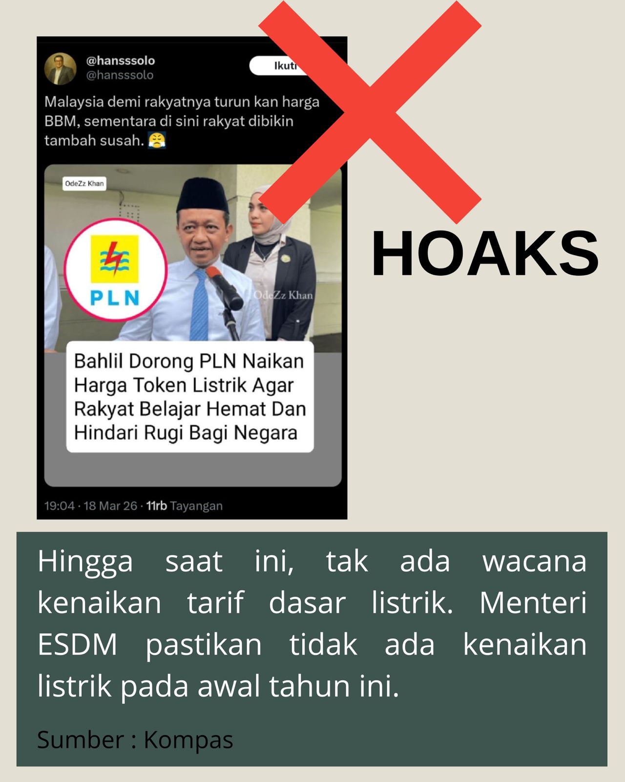Listrik naik itu hoaks ya guys. Sampai sekarang tarif masih tetap sama kok. Jangan mau dibohongin sama info yang nggak jelas asal-usulnya.