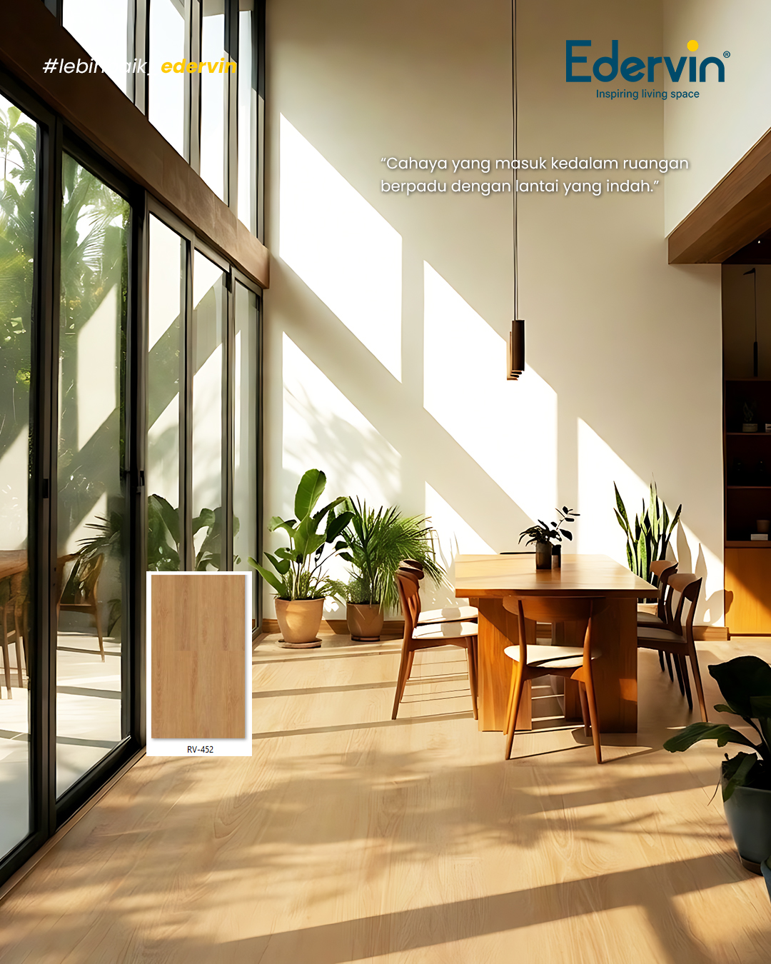 Sempurnakan sudut favoritmu dengan sentuhan alami. RV-452 by Edervin: Di mana keindahan lantai bertemu dengan kehangatan cahaya. ☀️