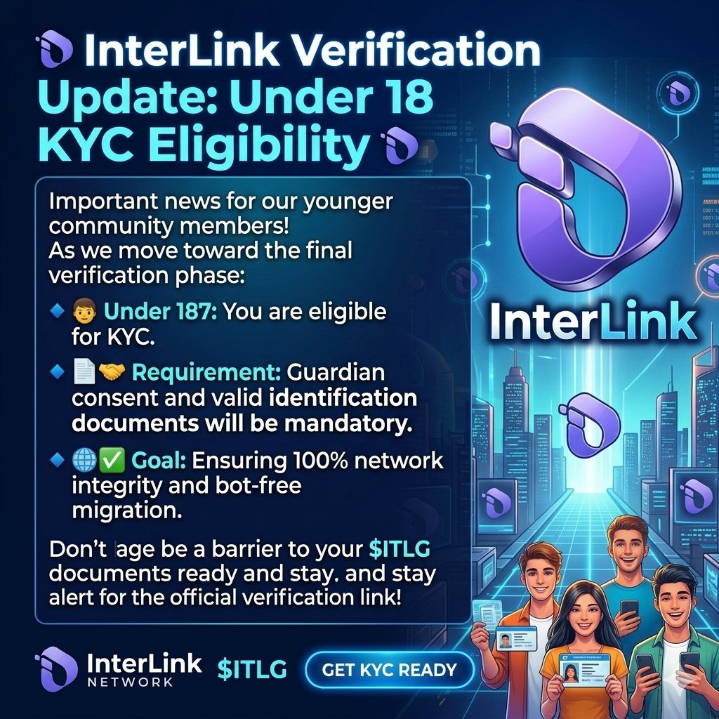 πŸš€ InterLink Verification Update: Under 18 KYC Eligibility πŸš€ Important news for our younger community members! As we move toward the final verification phase: πŸ”Ή Under 18? Yes, you are eligible for KYC! #InterLinkNetwork #ITLG #KYCRea3yv