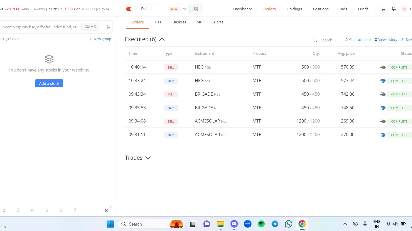 Widely unlucky. Monday was bad, trading when Index was down 3%. Wed and today good trades. Need to make strides in the PF.