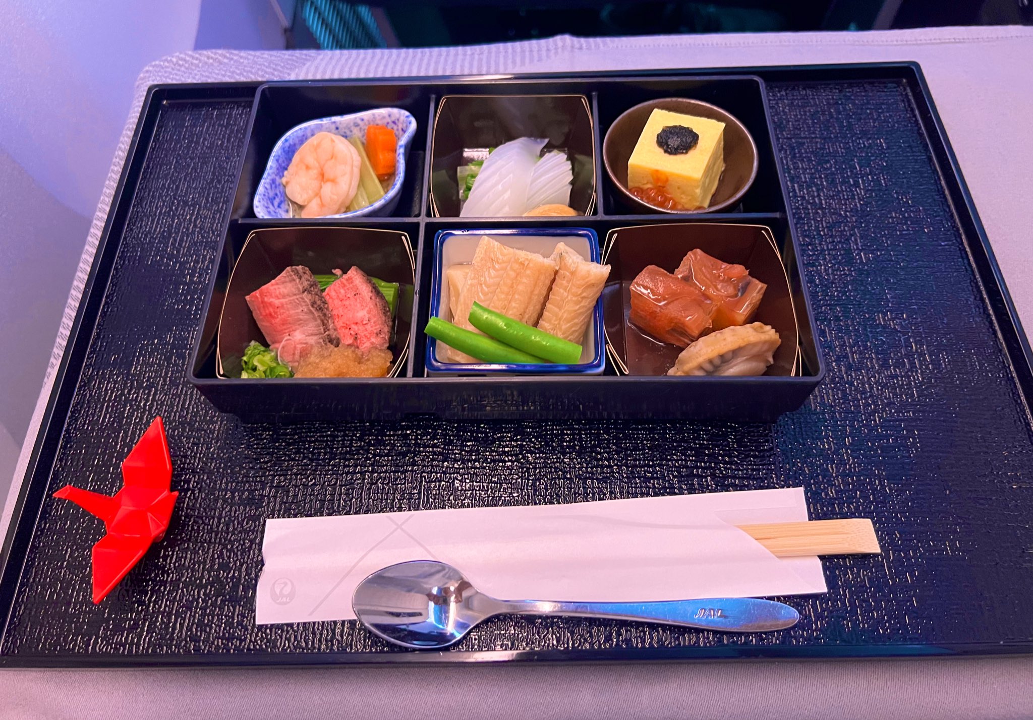 Yume @yumejgc2022 · 1h 帰りも和食を選択しました! まずは彩り御膳から。 色鮮やかで綺麗✨ 味も美味しかった😋 お酒でも飲むかとメニューみたら、 日本酒に好きな銘柄赤武と雅楽代が🍶 楽しみだなぁと頼んだら どっちもありませんでした😭 ※他銘柄がありました 結局綾鷹継続しました🤣 #JAL #JALビジネスjxZe 19 134