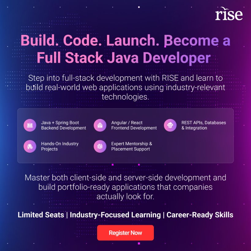 #FullStackJava #JavaDeveloper #DSA #AI #SpringBoot #ReactJS #AWS #DevSe2NpQ5