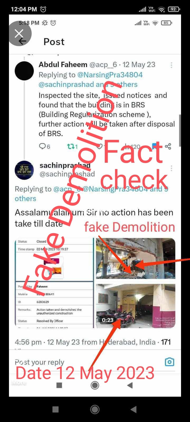 👉 2019 Today 28-3-2026 No Demolition @malkpetDC Staff@acp_6 Abdul Faheem?