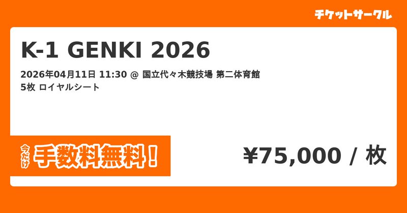 From tokyoheadline.comK-1 GENKI 2026 2026/04/11(土) 11:30 5枚 75,000円のチケットを購入できます。チケットサークルで、チケットを転売・販売・リセールしよう。