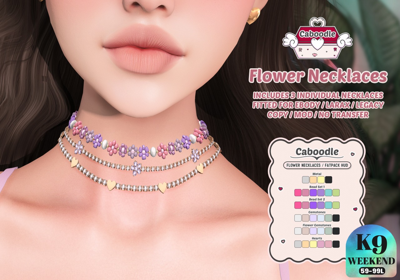 Kawaii Feed @KawaiiFeedSL · Mar 15 Caboodle: Flower Necklaces〡K9 Weekend Sale @ Mainstore〡Taxi: maps.secondlife.com/secondlife/Cab… #SecondLife #Caboodle #K9WeekendSale #Mainstore #KawaiiFeed 1 5 302