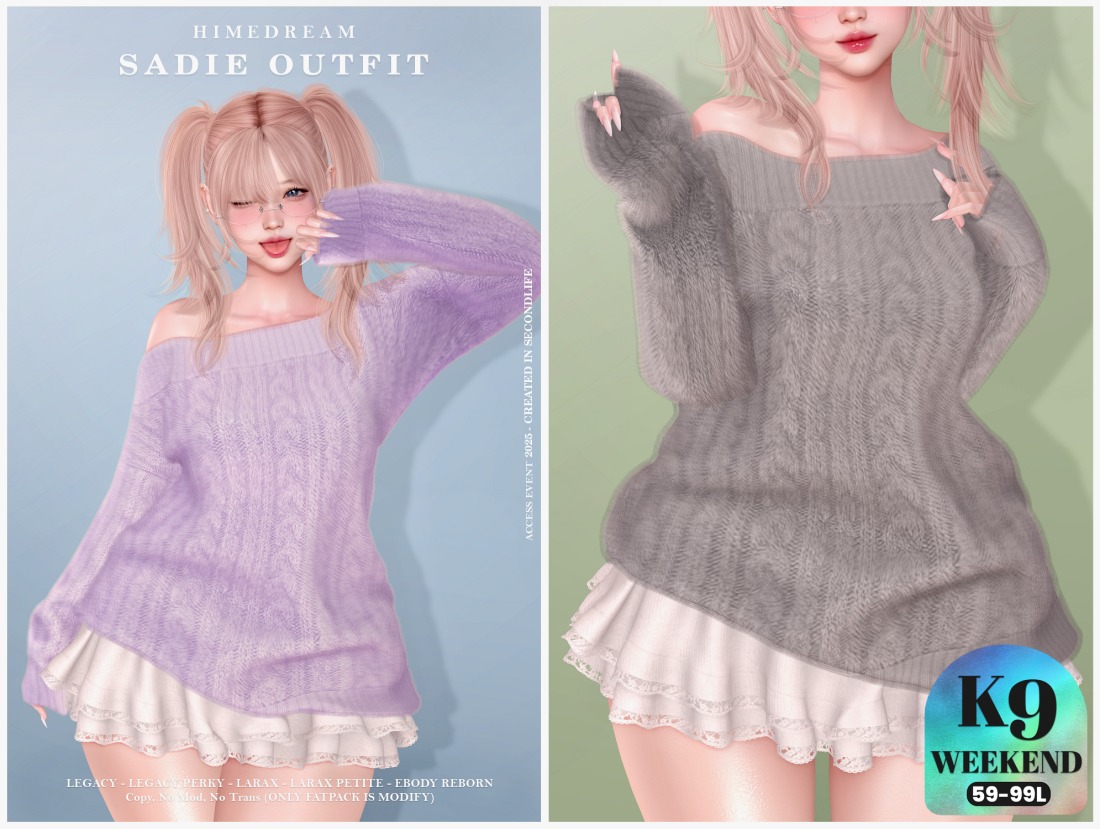 Kawaii Feed @KawaiiFeedSL · 12h {HIME*DREAM} Sadie Outfit〡K9 Weekend Sale @ Mainstore〡Taxi: maps.secondlife.com/secondlife/ORC… #SecondLife #HimeDream #K9WeekendSale #Mainstore #KawaiiFeed 4 24 436