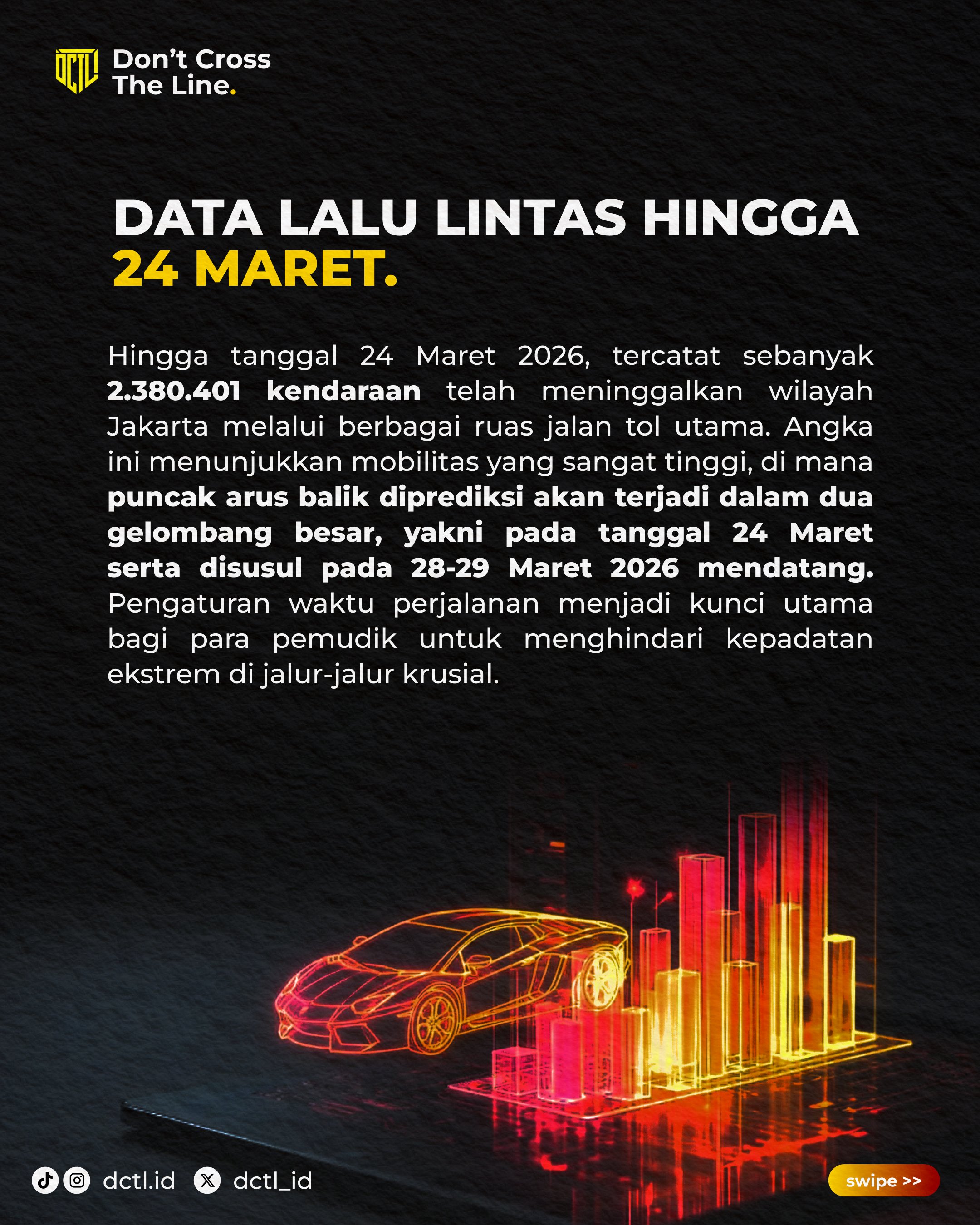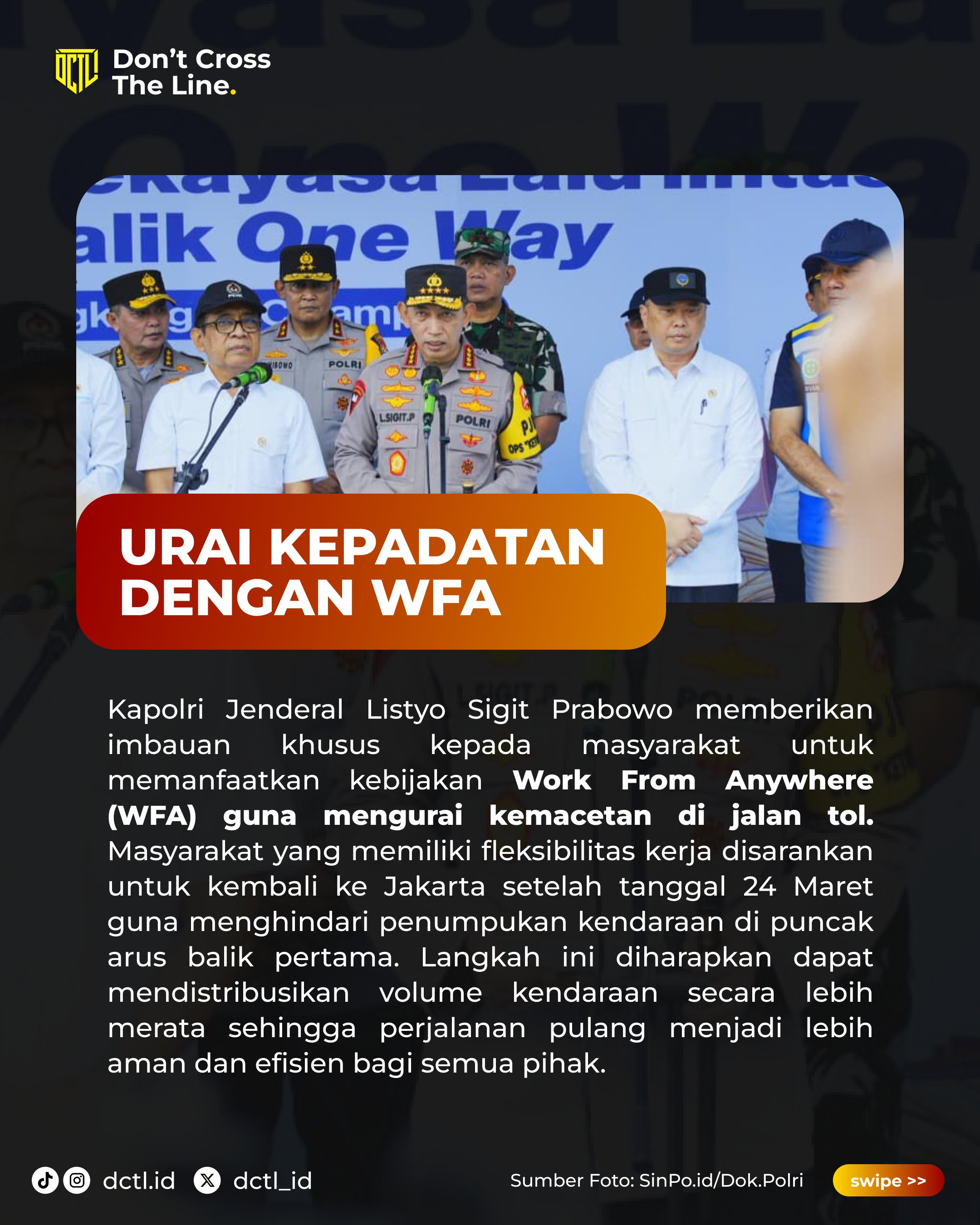 SEBANYAK 2.561.629 pemudik sudah tiba di Jakarta pada H+6 Lebaran. Hal tersebut dikatakan Kapolri Jenderal Polisi Listyo Sigit Prabowo saat meninjau arus balik di Bakauheni, Lampung, Sabtu.