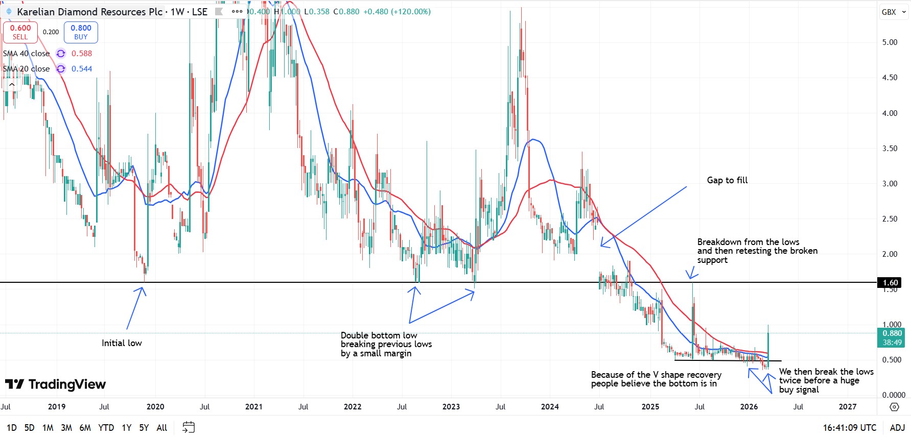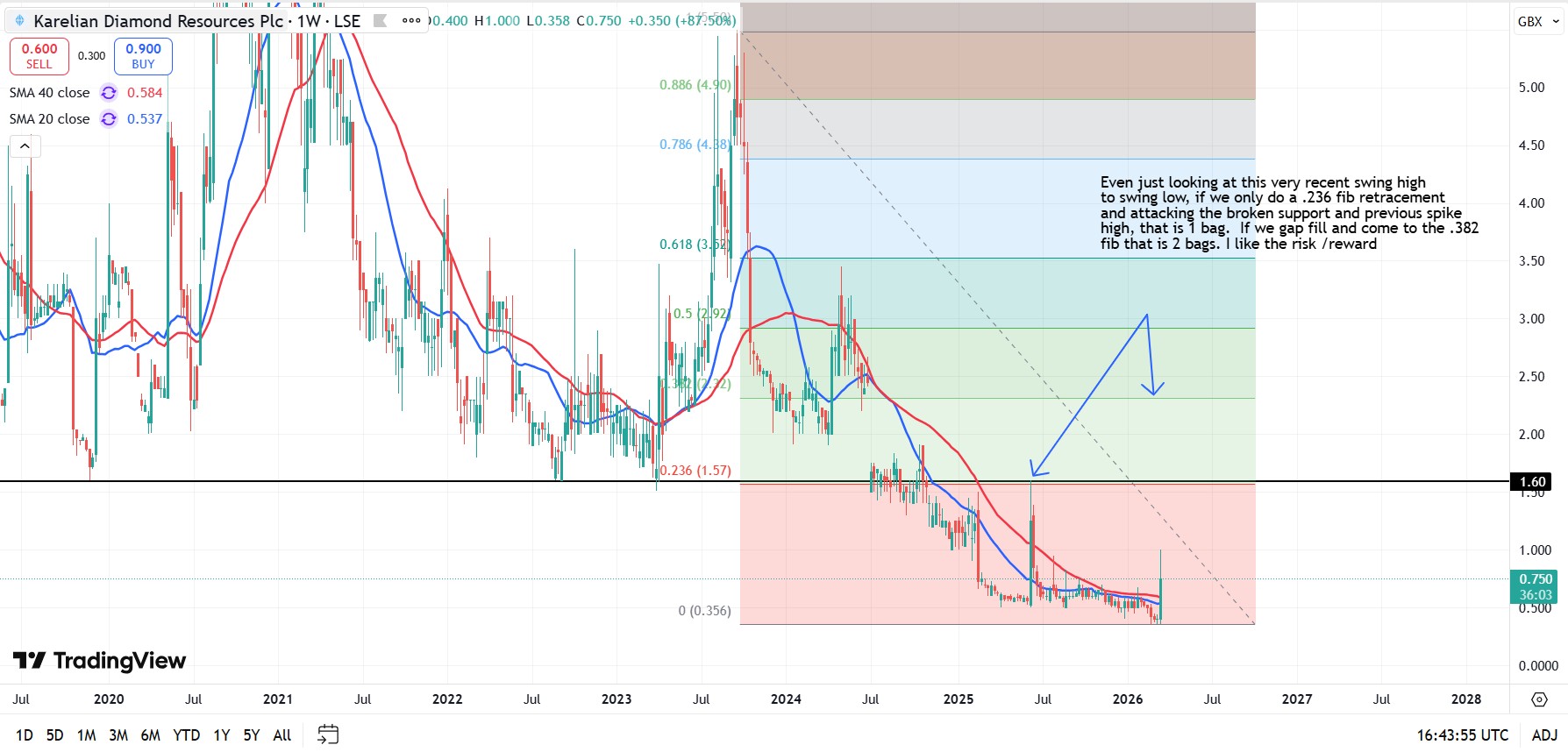 @KarelianDRplc raised funds via a CLN at a 300% premium to the SP, new and existing investors willing to pay such a premium is a huge vote of confidence that suggests the company is undervalued. A view of the charts agrees with that analysis.