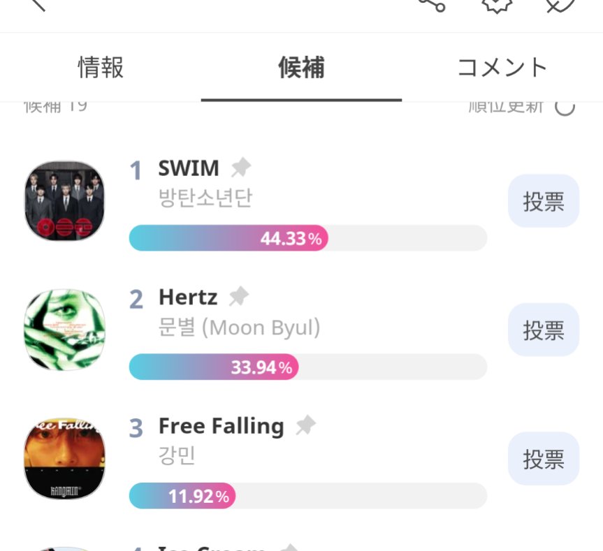 nana @nanatoshihome · 1h IDOLCHAMP バンタン現在1位 なんだけど ジワリと2位の方が上げてきてますね 注視しましょう⚠️ #BTS_SWIM #BTSARIRANG #KEEPSWIMMING #BTS SWIM 방탄소년단 투표 완료🗳️promo-web.idolchamp.com/app_proxy.html…qU 3 7 62