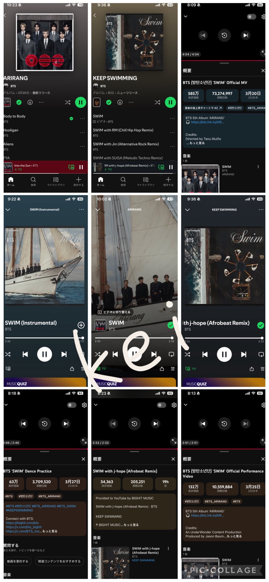 mi ⊙⊝⊜ @knj_collector · 15m Replying to @btstatsreminder @btstatsreminder KEEP STREAMING ARMYRANG #BTS_ARIRANG #BTS_SWIM #KEEPSWIMMING 24