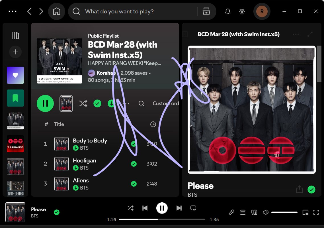 ⟬⟭Chimarmy⁷⟭⟬🪭 @Chimarmy1 · 15m Replying to @btspotifycentre @btspotifycentre #BTS_ARIRANG #BTS_SWIM #KEEPSWIMMING 77