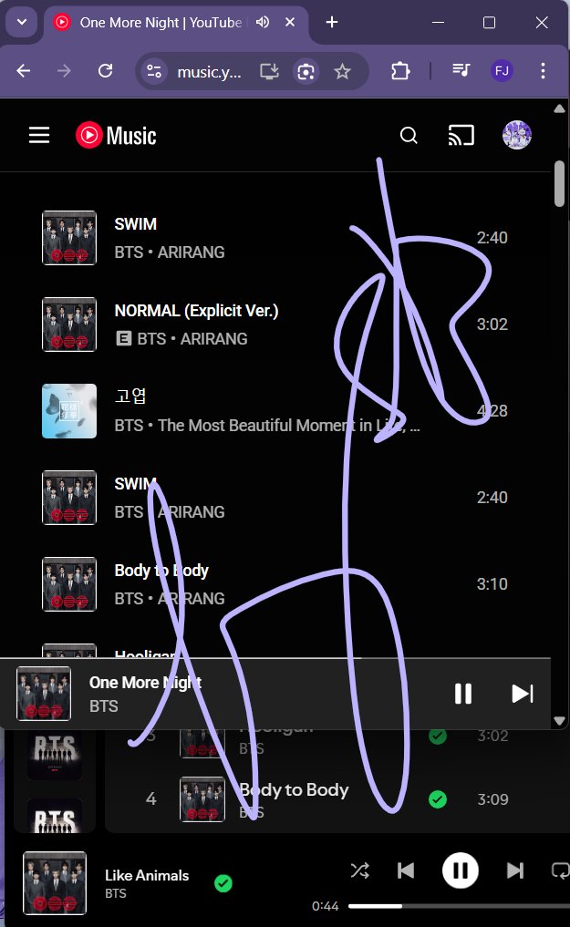 FJ⁷⁼¹ SWIM | ⊙⊝⊜ | 𝑨𝑹𝑰𝑹𝑨𝑵𝑮 03.20.2026 @purplelifewbts · 26m Replying to @btstatsreminder @btstatsreminder Also streaming on AM on my phone. ��#KEEPSWIMMING, ARMY!X 1 2 36