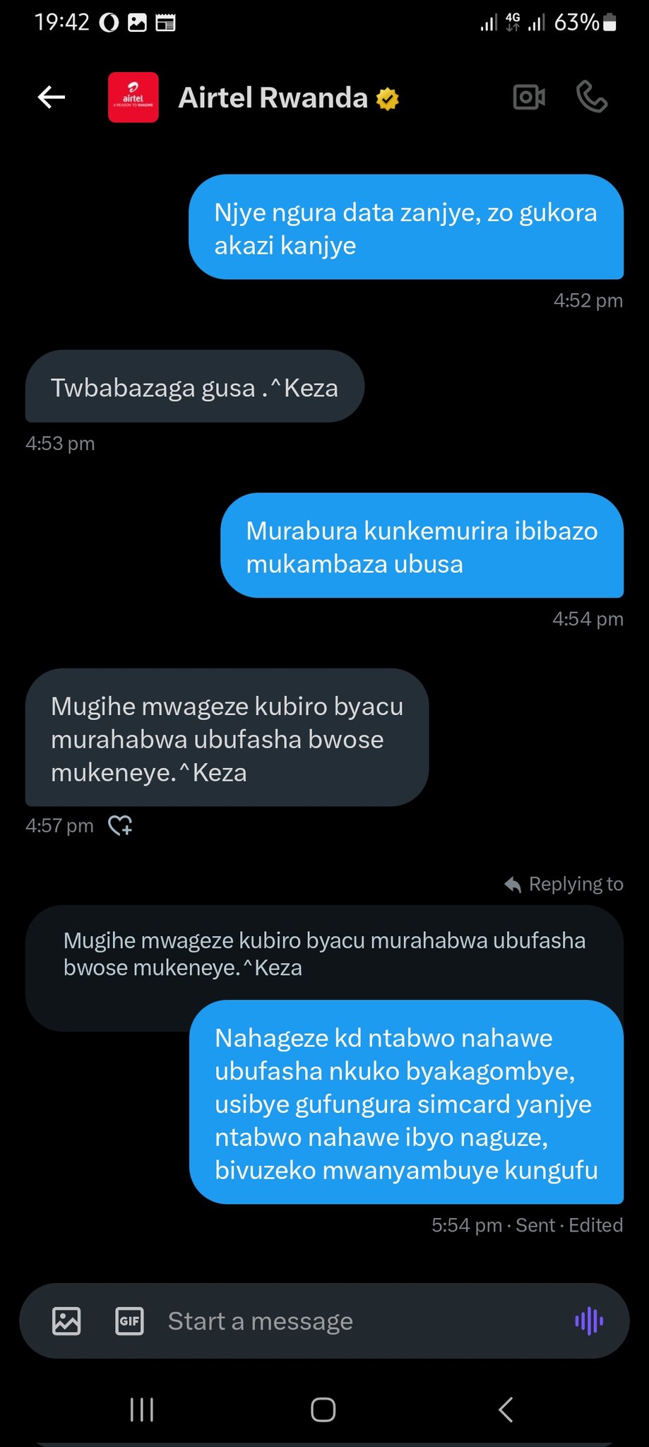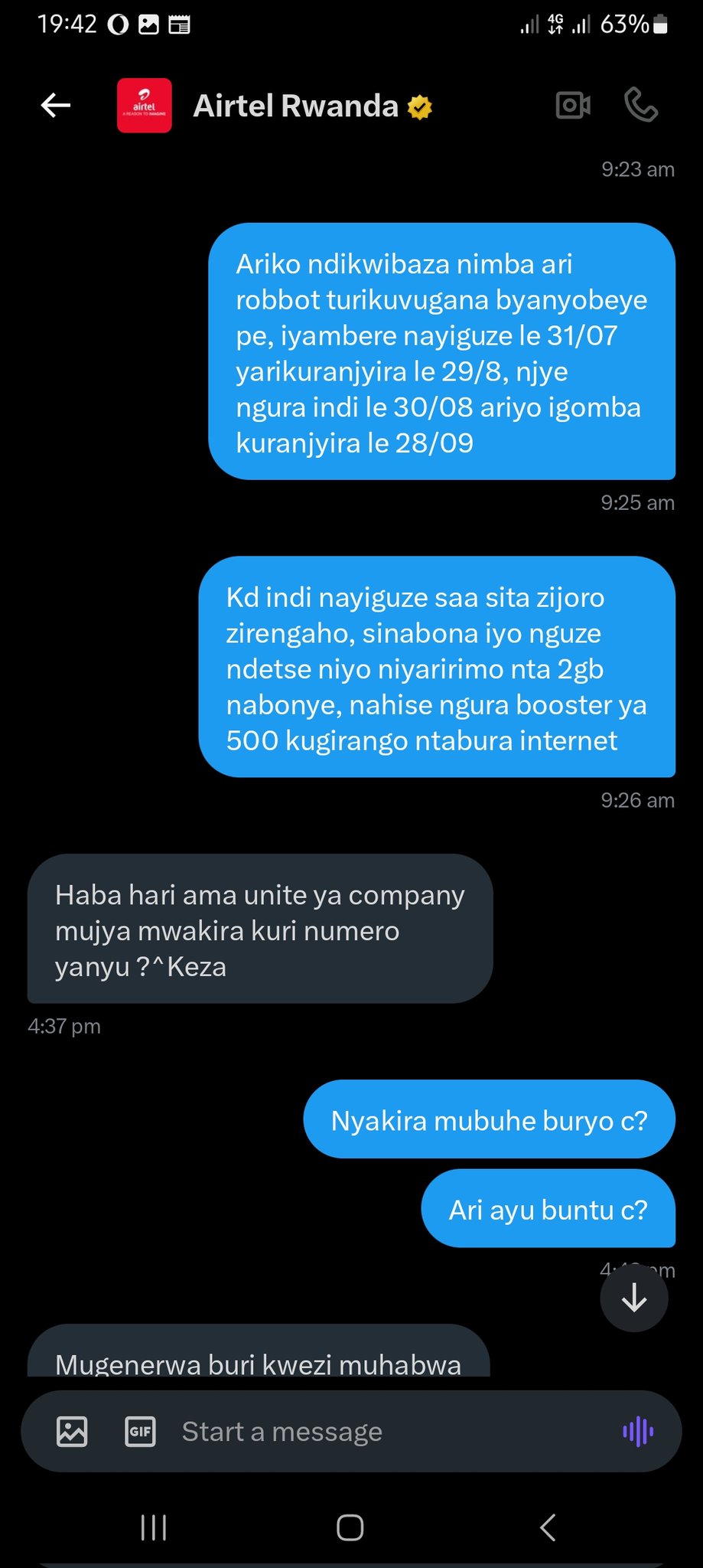 @airtelrw @RURA_RWANDA @Laurier #Keza ntabufasha nahawe bufatika, kuko nanubu ndacyabusaba kuko mwandenganyije, kd nanubu nyimushaka kumva ikibazo cyanjye