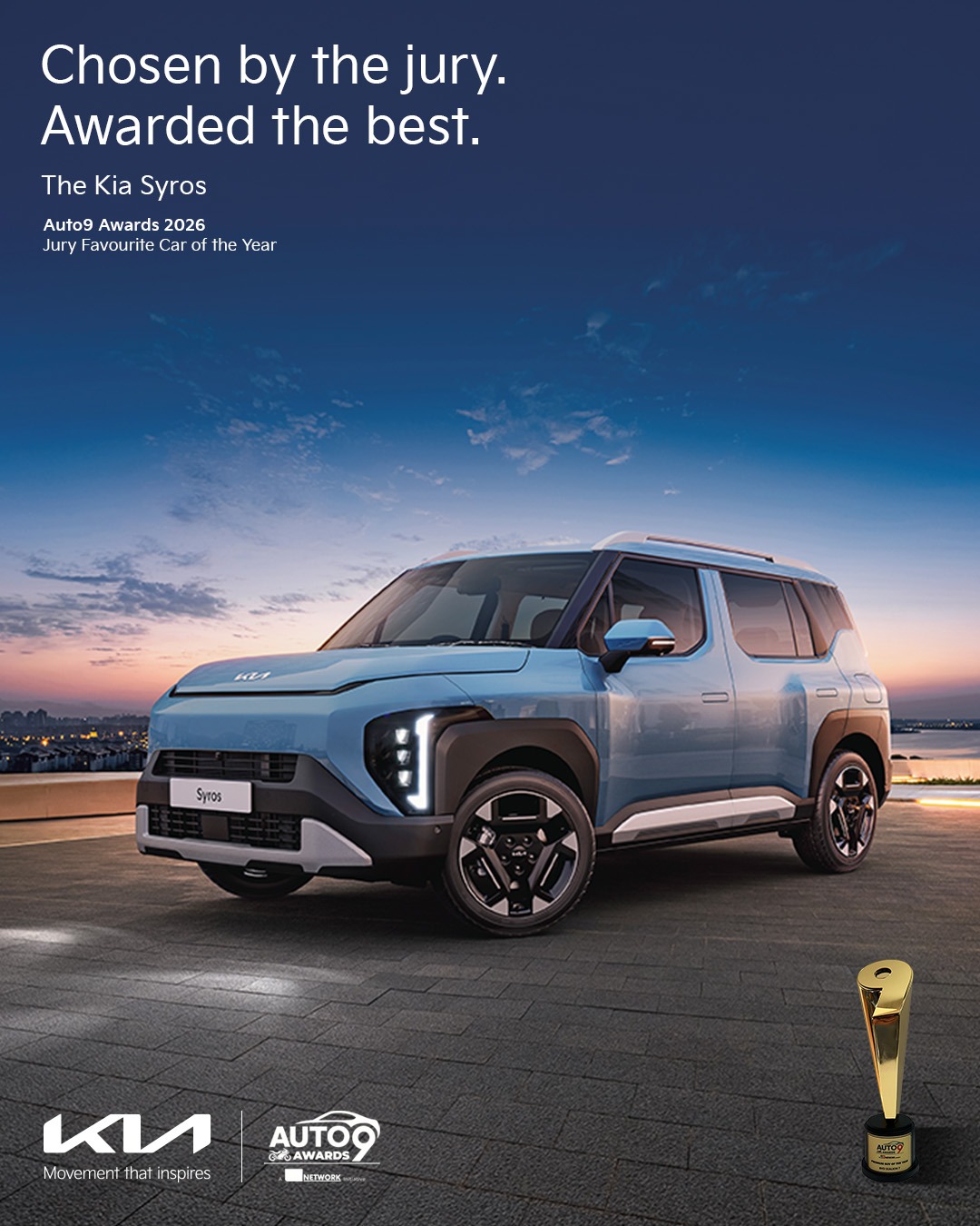 When experts agree, excellence stands tall. Chosen by the Auto9 jury, the Kia Syros takes home the Jury Favourite Car of the Year at the Auto9 Awards 2026, a bold statement of performance, design and confidence on every road.
