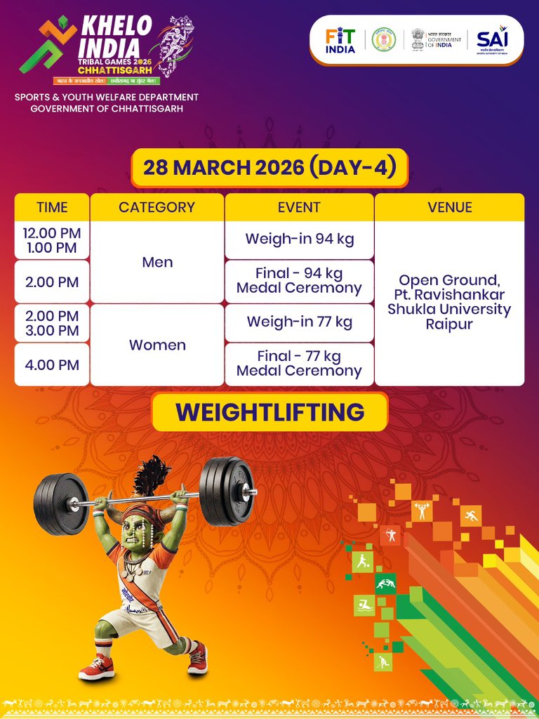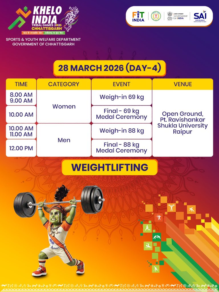 आज फुटबॉल के महिला वर्ग के ग्रुप स्टेज मुकाबले में #झारखंड ने असम को एक के मुकाबले नौ गोलों से हरा दिया है। एक अन्य मैच में गुजरात ने आंध्रप्रदेश को शून्य के मुकाबले पच्चीस गोलों से मात दी है। इसके अलावा आज #रायपुर में वेटलिफ्टिंग और हॉकी के मुकाबले भी हो रहे हैं। #KITG2026