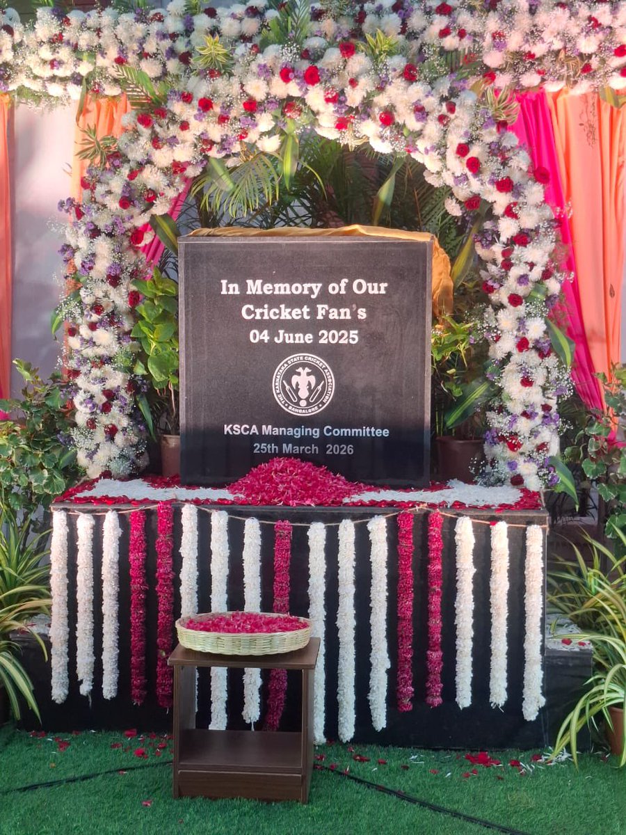 KSCA sets up memorial at Chinnaswamy Stadium; players wear black bands, 11 jerseys & seats left empty in memory of the departed.