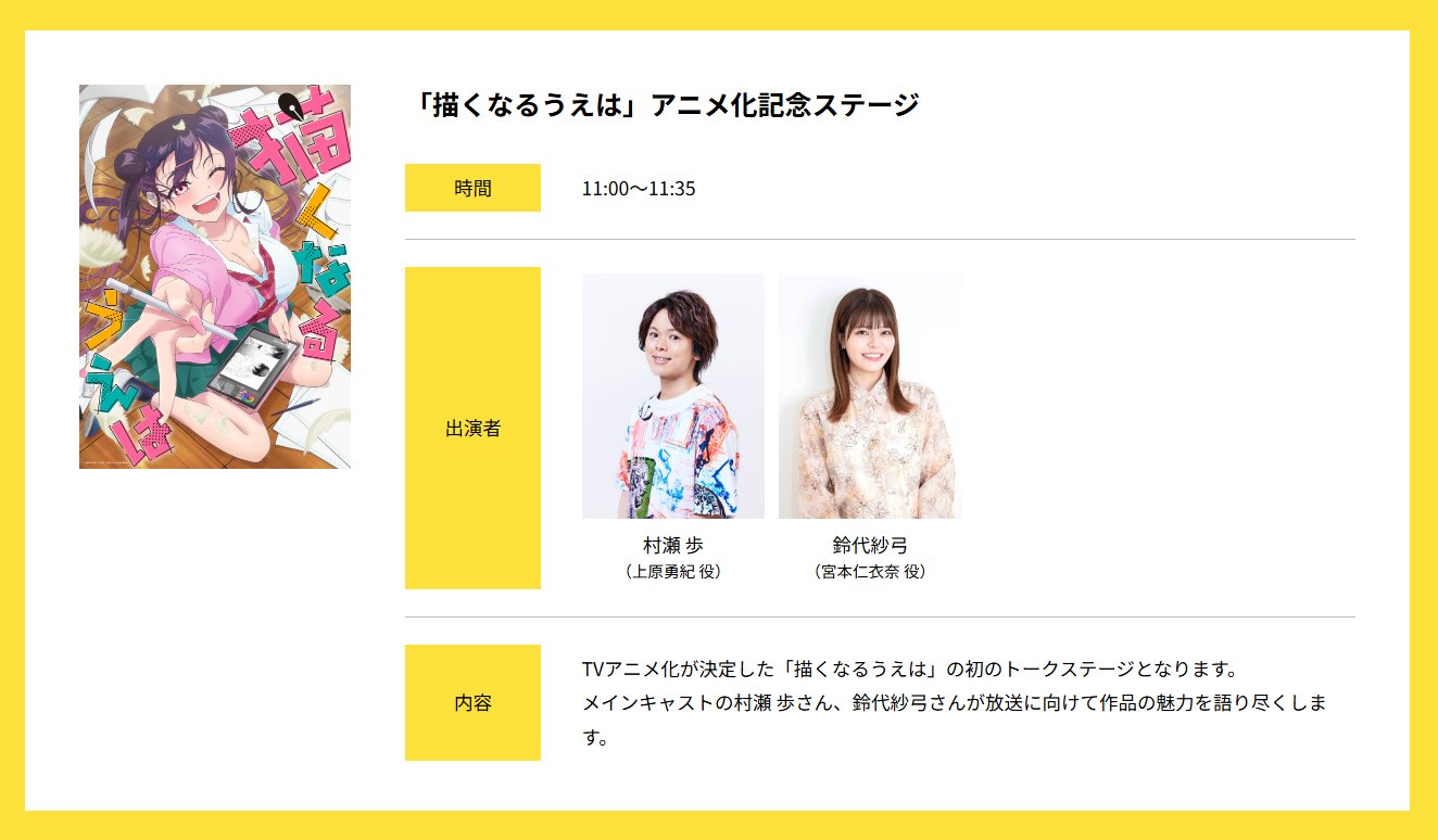 KAC/SB公式 @kac_officialhp · 17h / #AnimeJapan 2026🗻 #キングレコード ブース�� #KAC 作品ステージ情報💡 \ 🎀11:00-11:35 「描くなるうえは」アニメ化記念ステージ ��️登壇 #村瀬歩 #鈴代紗弓 �kakunaru-anime.comTp1S1V #描くmOrTxu 1 7 2.3K