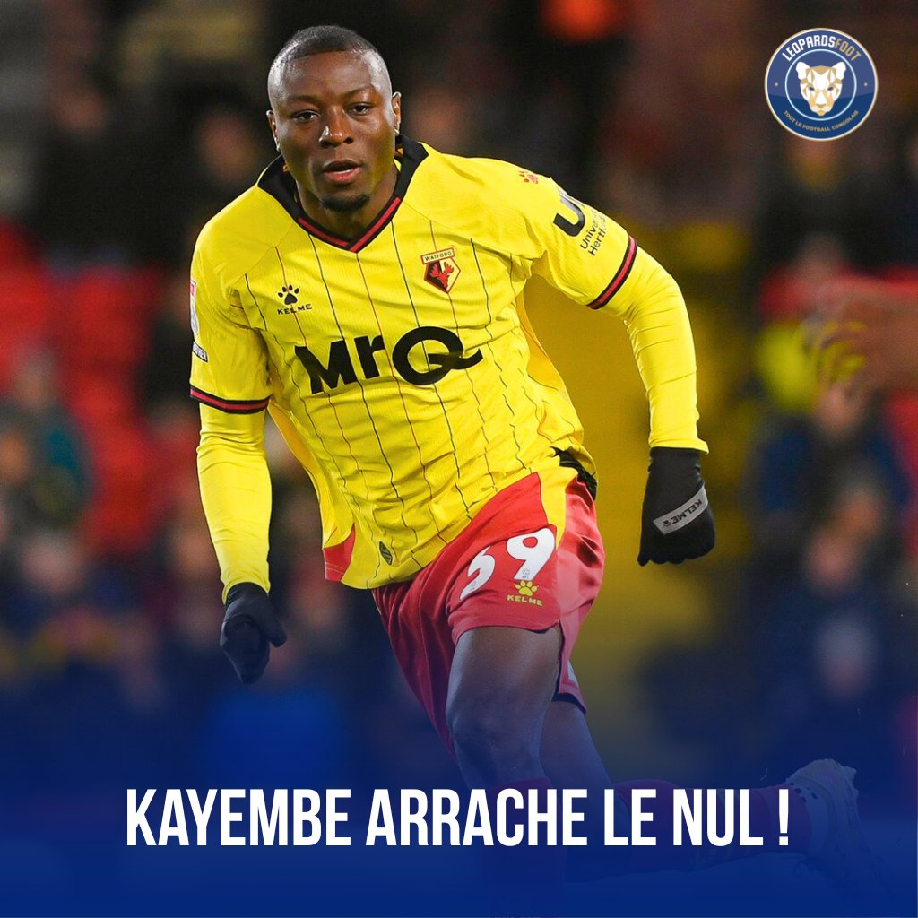 Edou #Kayembe a brillé en marquant deux buts décisifs permettant à Watford de remporter une victoire spectaculaire contre Derby County (2-3). Après ses performances avec les Léopards, Kayembe a montré une forme exceptionnelle, confirmant son rôle clé au sein de l'équipe.