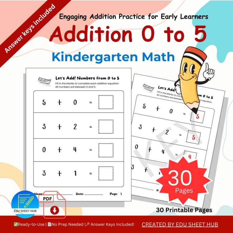 Edu Sheet Hub @edusheethub · Dec 30, 2025 Numbers 0–5 made easy! 🎉 30 fun addition worksheets with answer key — perfect for class or home learning ⭐ Check them out ➡️ buff.ly/SGMm37g #MathPractice #KindergartenMath #EduPrintables4 5