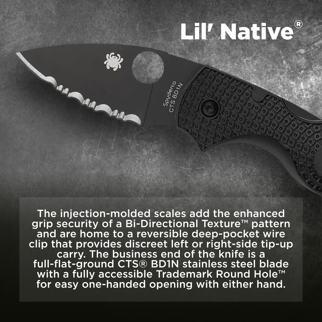 Sports-and-Gadgets @SportsandGadget Β· 3d Spyderco Lil' Native Lightweight (C230SBBK) πͺ 2.42" SpyderEdge black blade, CTS BD1N steel, FRN handle, and Back Lock. Official dealer in US, Canton, MA. Free Shipping or Fast 2 Day Shipping. sports-and-gadgets.com/collections/neβ¦O #KnifeLife #Spyderco #Sports & #Gadgetsa 25