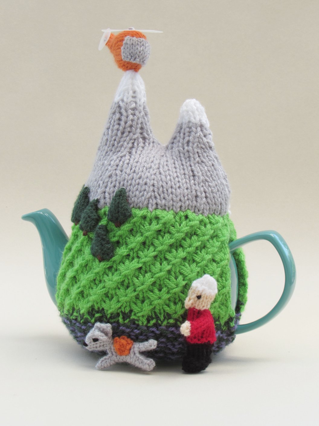 A fun knit celebrating heroic teamwork — this mountain rescue tea cosy brings rugged outdoor spirit to your teapot.