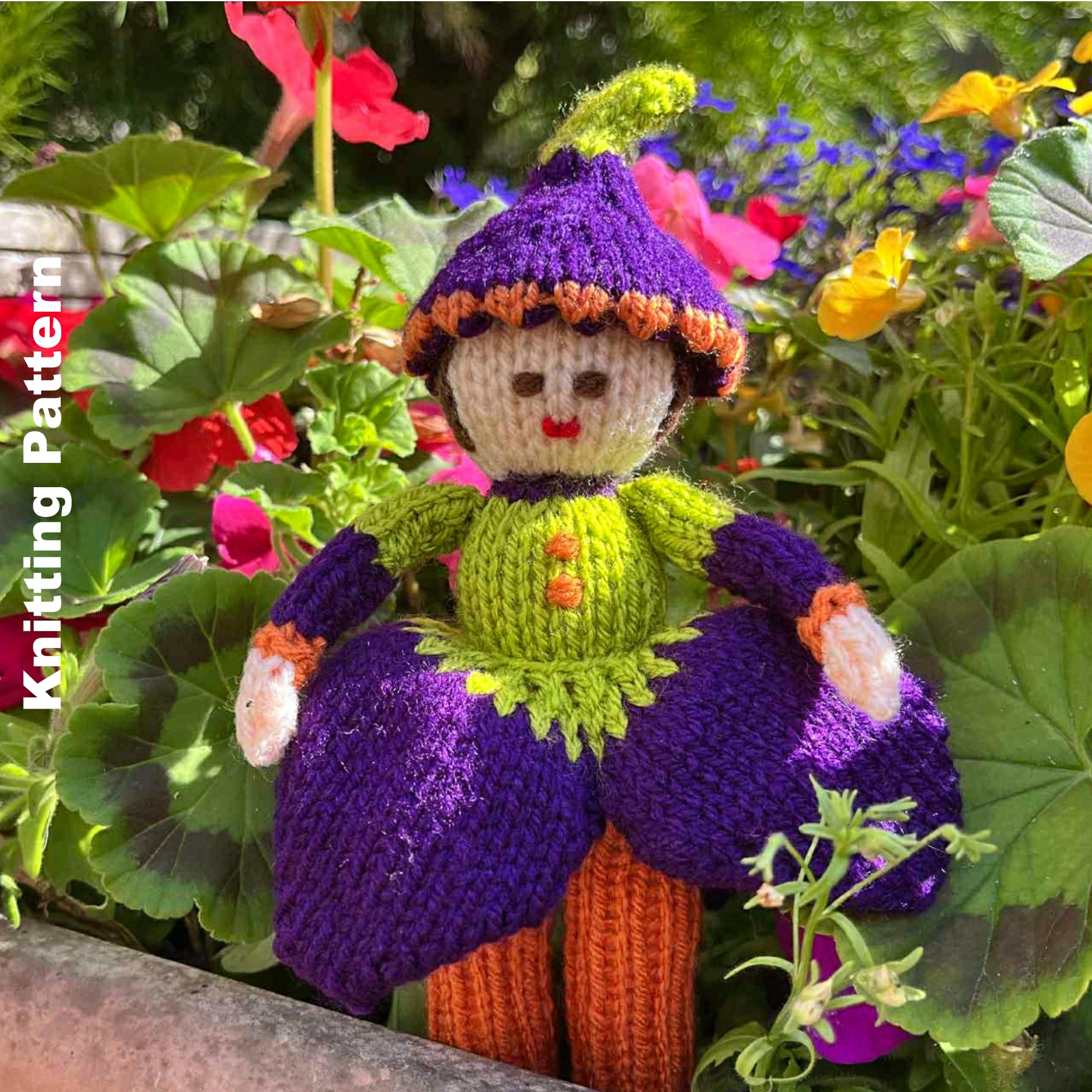 Crocus Flower Doll Knitting Pattern by Edith Grace Designs.