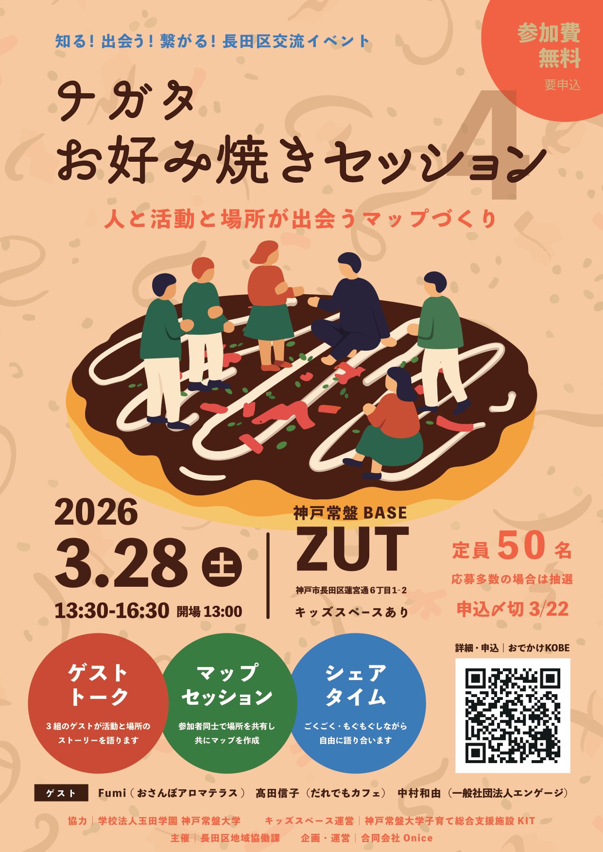 あじどころ はる @ajidokoro_haru · 12h 午後からは1月に"こども食堂EXPO"を開催させて頂いた"常盤ベース ZUT"で長田区交流イベント「ナガタお好み焼きセッション」に参加させて頂いております😌 長田区で活動されている団体・個人の方が参加されていて色々なお話が聞けそうです🤩 #神戸市 #こどもの居場所 #KOBE #hyogo #nagataj 2 54