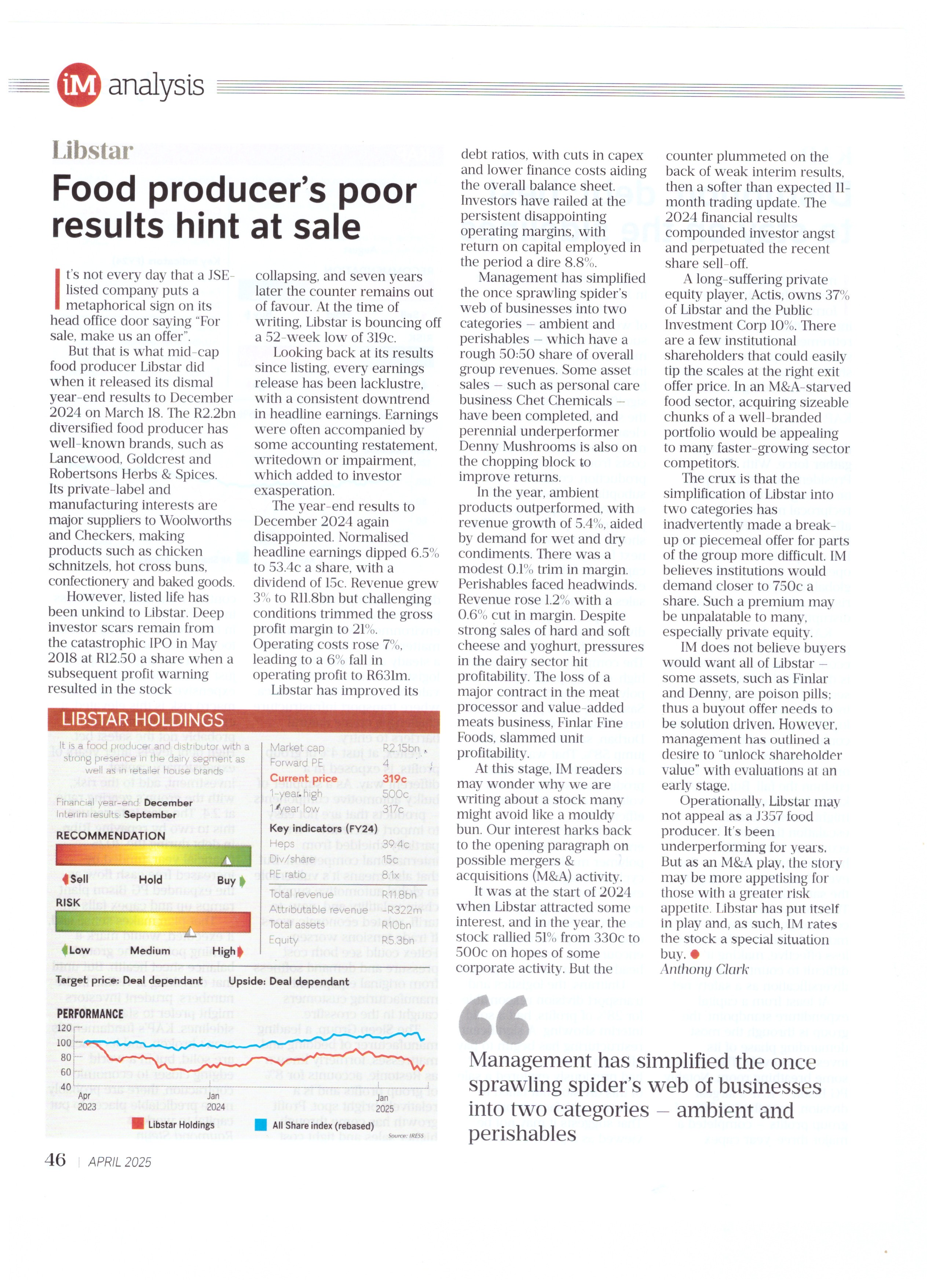 The anticipated FY2025 results released by small-cap J357 food producer $JSELBR Libstar are released
