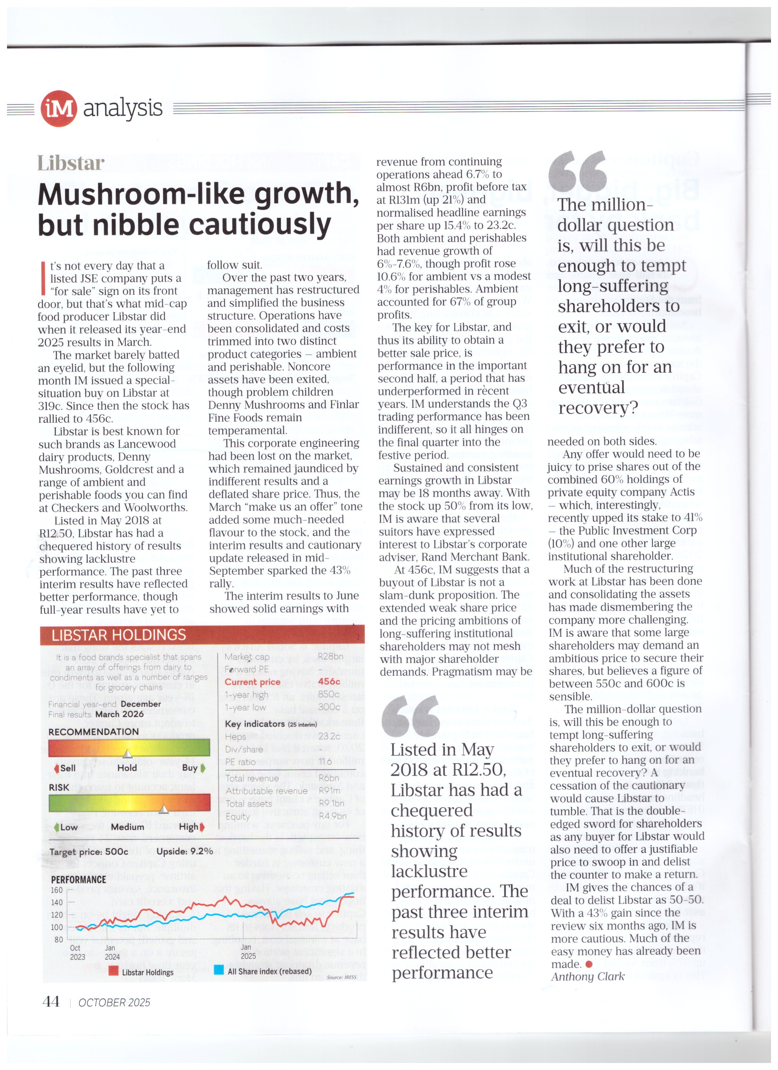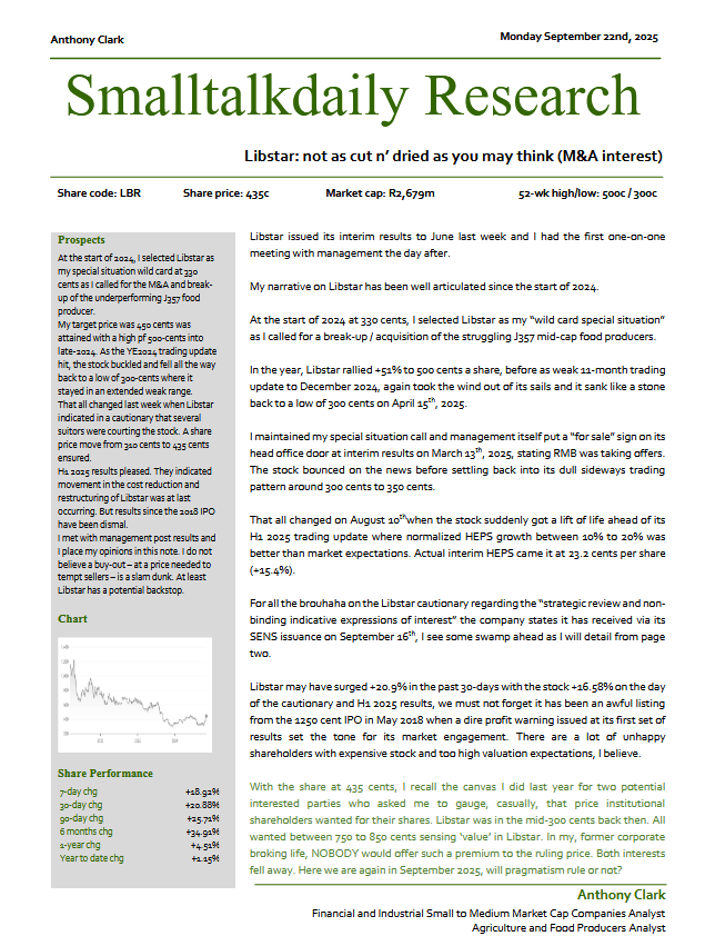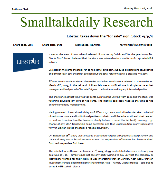 #LBR in 2025, I gave the likelyhood of a deal happening as 50 : 50. In a @FinancialMail company update in October 2025 at 456 cents I urged caution