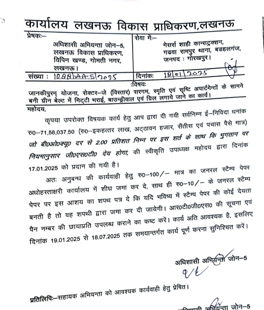 ष #LDA प्रथमेश कुमार जी की उदारता से जनवरी 2025 को जारी हुई थी..ग्रीन बेल्ट सौंदर्यकरण (मिट्टी भराई, बाउंड्री बॉल एवं ग्रील व अन्य कार्य) हेत निधि!