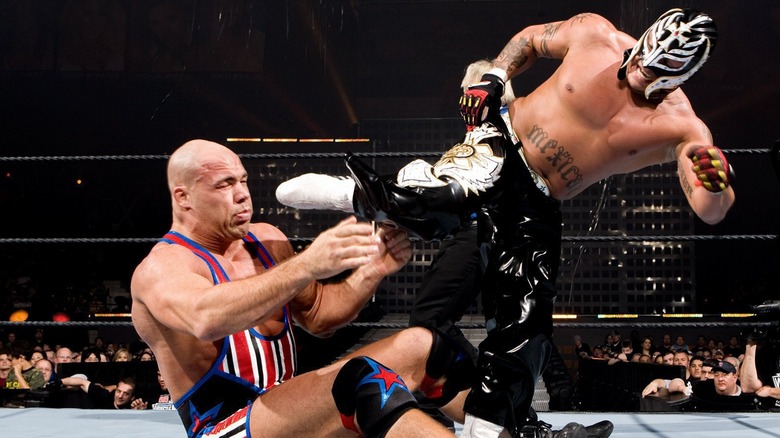 As Otis and the rest of Alpha Academy walk away, #LWO are sarcastically greeted by New Day. After an exchange of words between New Day and Rey Mysterio, Rey decides that it is time to start shutting up any egos that need to be checked...