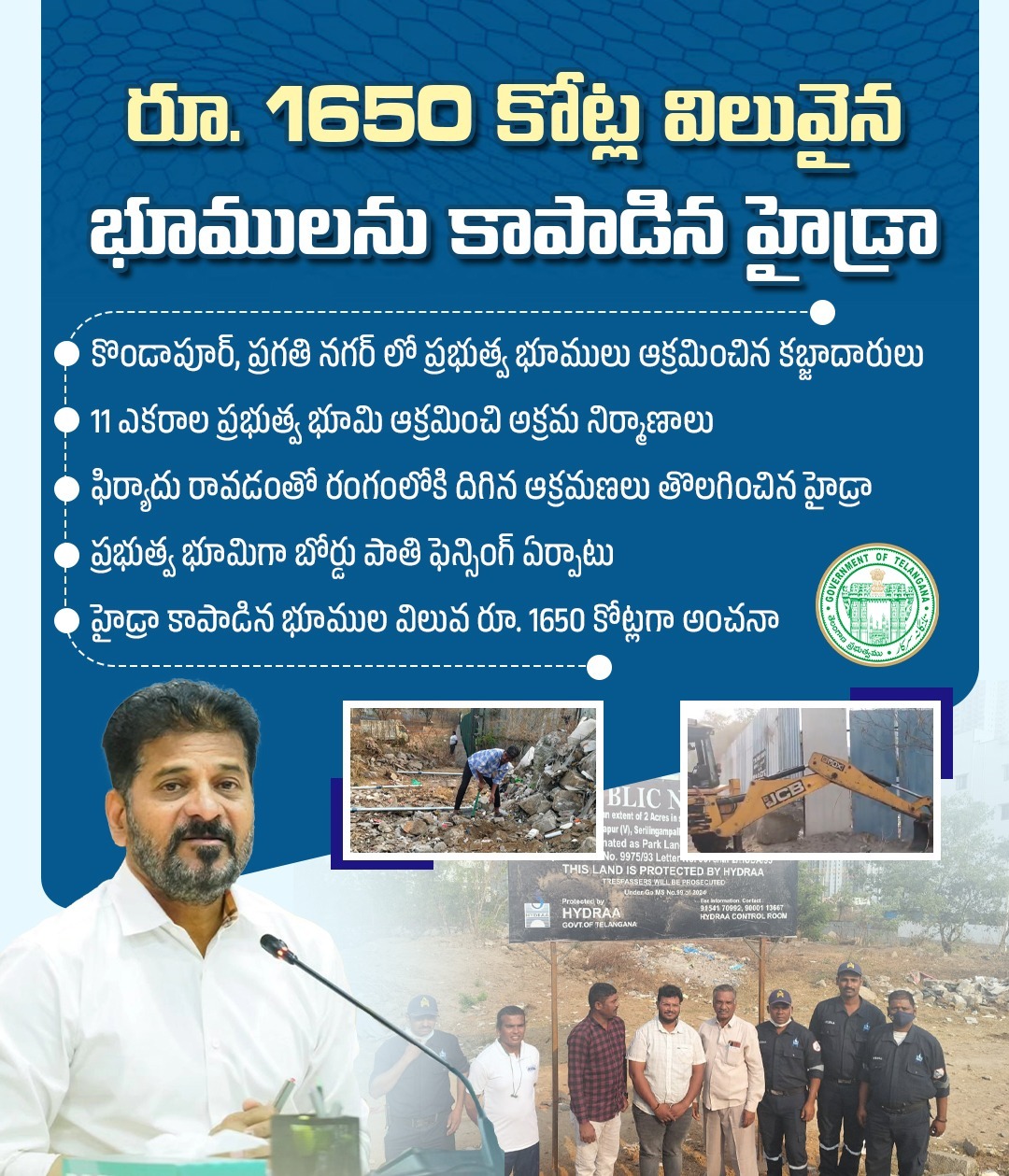 కబ్జాదారులపై కఠిన చర్య… ₹1650 కోట్ల ప్రభుత్వ భూమి రక్షణ! 🏙️🚫. #HYDRA #Hyderabad #LandProtection #StopEncroachment #TelanganaGovAK