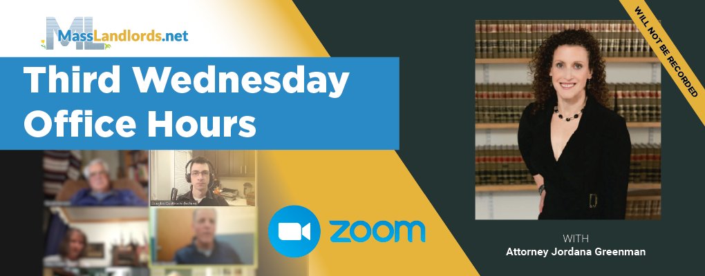 Ask us anything about rental housing! Open Q&A Office Hours with Attorney Jordana Greenman will be Wednesday, April 15, at 4:30 p.m. on Zoom. Open to all members! masslandlords.net/spotlight-even…