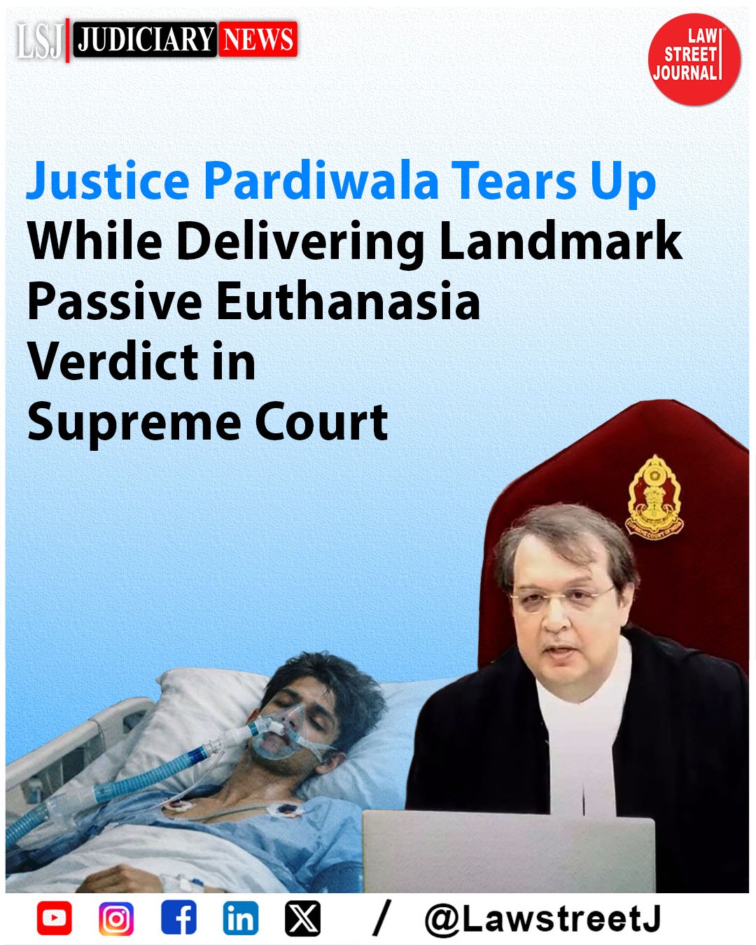 #SupremeCourt allowing passive euthanasia for Harish Rana, a 32-year-old man who has remained in a persistent vegetative state for the past 13 years following a tragic fall. The Bench of Justice Pardiwala and Justice K. V. Viswanathan permitted Rana’s parents to withdraw life-sustaining medical treatment, observing that the crucial question in such cases is not whether death is in a patient’s best interest, but whether continuing treatment truly serves the patient’s best interest.