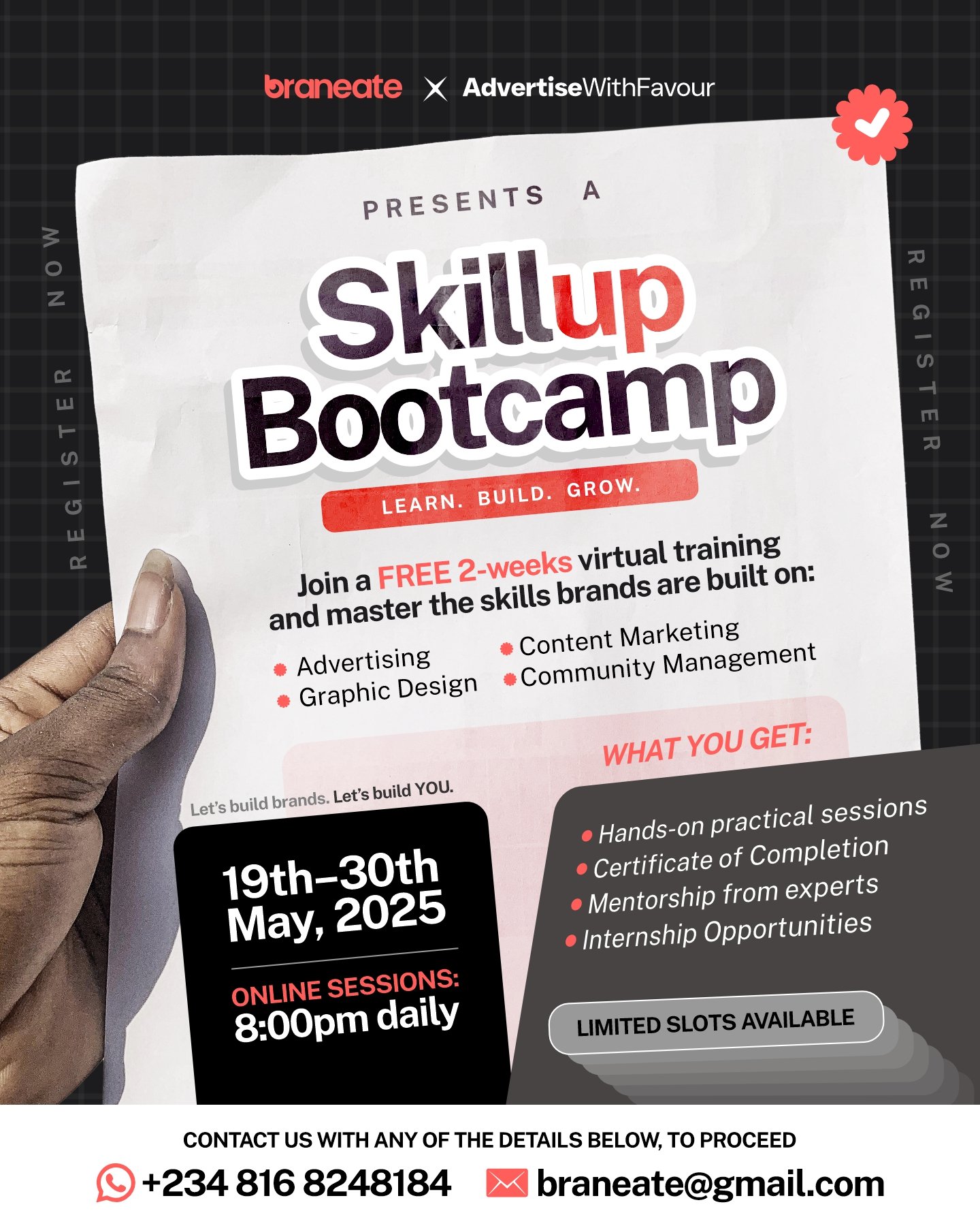 Braneate, in collaboration with AdvertiseWithFavour, presents the SkillUp Bootcamp—a powerful 2-week virtual training designed for individuals, students, and brand owners who are serious about growth.