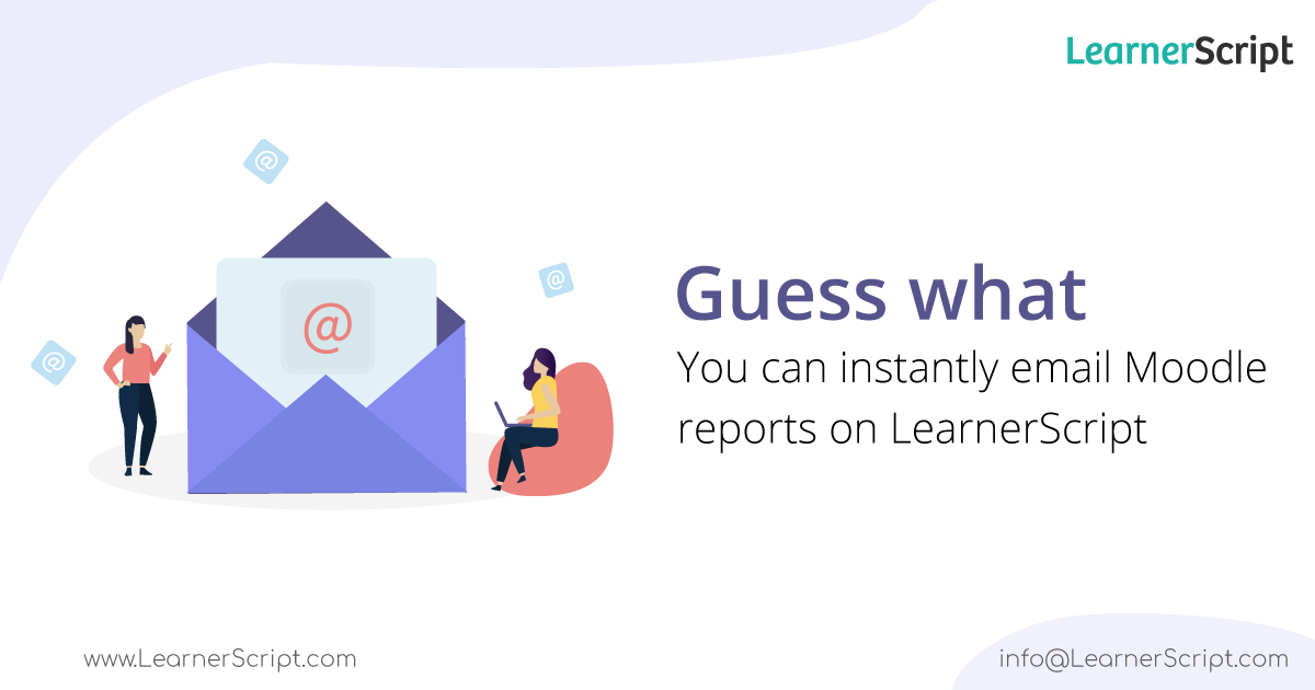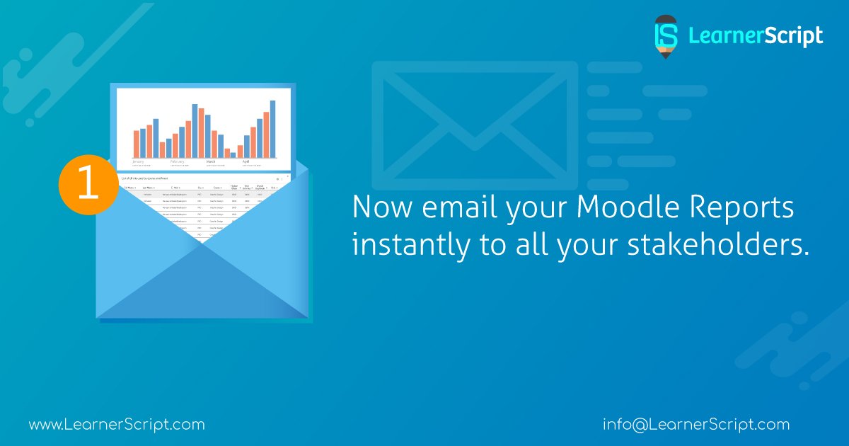 Want to share your reports of Moodle Learning Analytics at the drop of a dime? Employ LearnerScript which makes your job super-fast, with instant email facility.