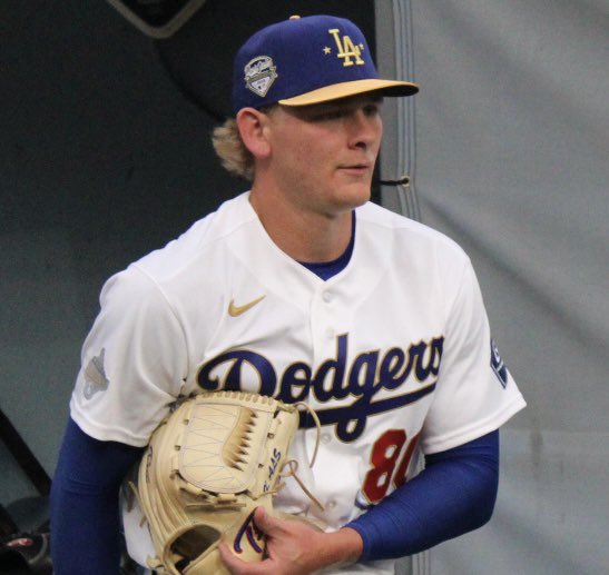 Patrick Robles @roblespan · 4h #LetsGoDodgers Emmet Sheehan warmsup before the pregame 2025 MLB Championship Ring Ceremony. 71