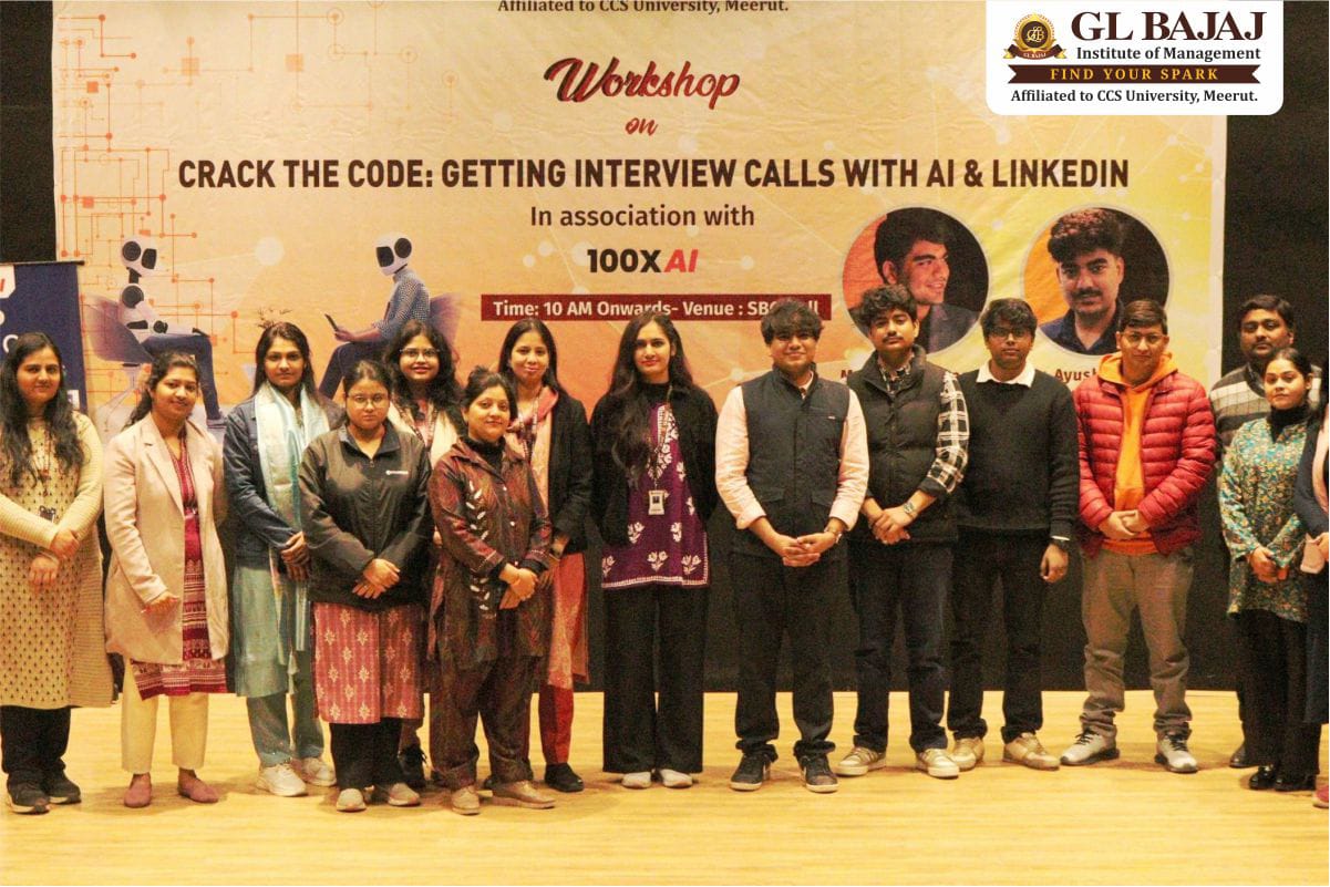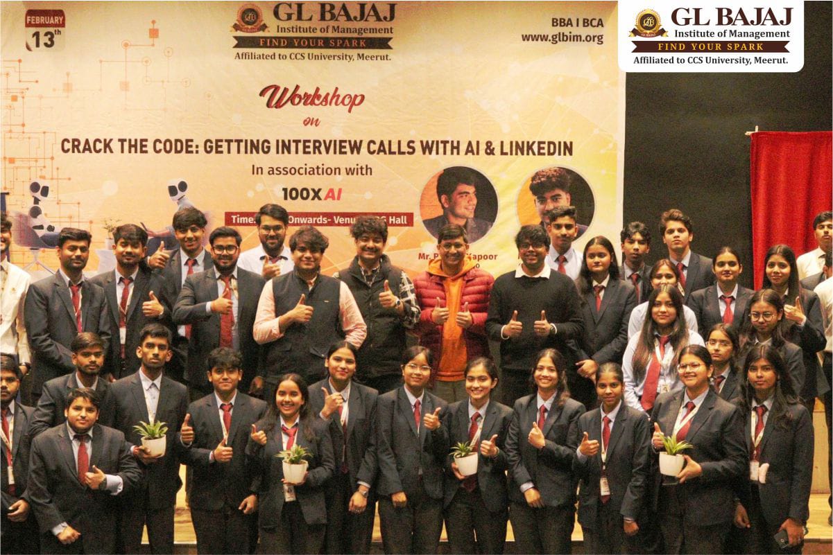 GL Bajaj Institute of Management @GLBIOM · Mar 18 GL Bajaj Institute of Management successfully organized an insightful 100XAI Workshop titled “Crack the Code:Getting Interview Calls with AI & LinkedIn” for the BBA and BCA students on campus. #GLBIM #100XAI #LinkedInLearning #AIinCareers #CareerReadiness #StudentDevelopment 1 23