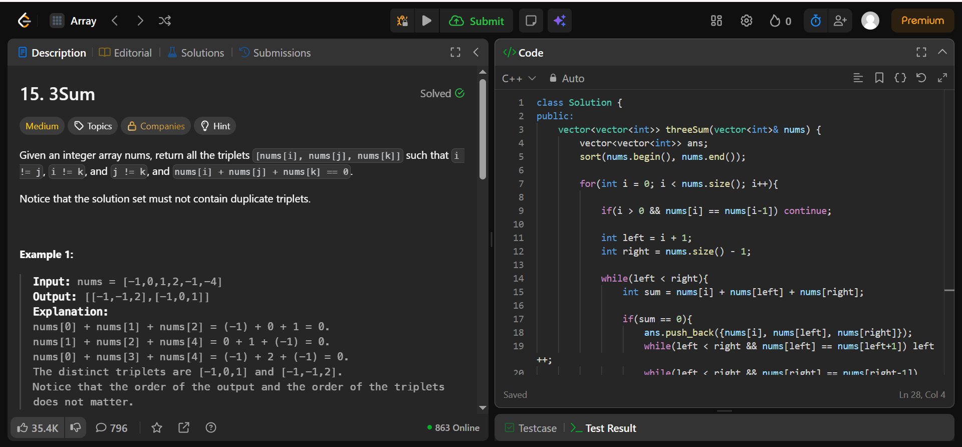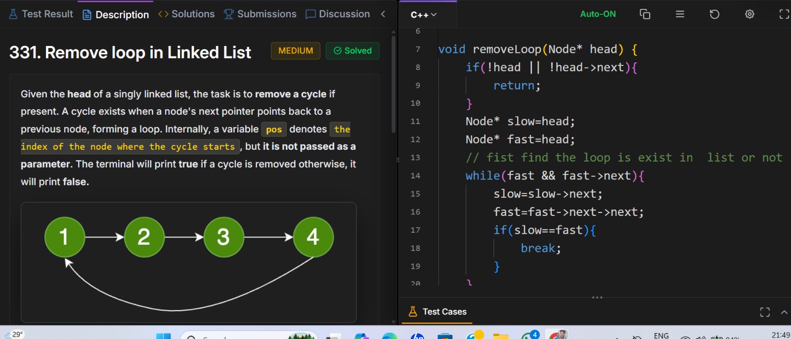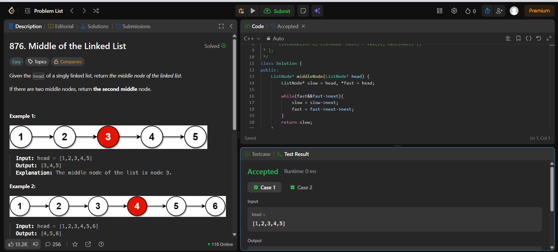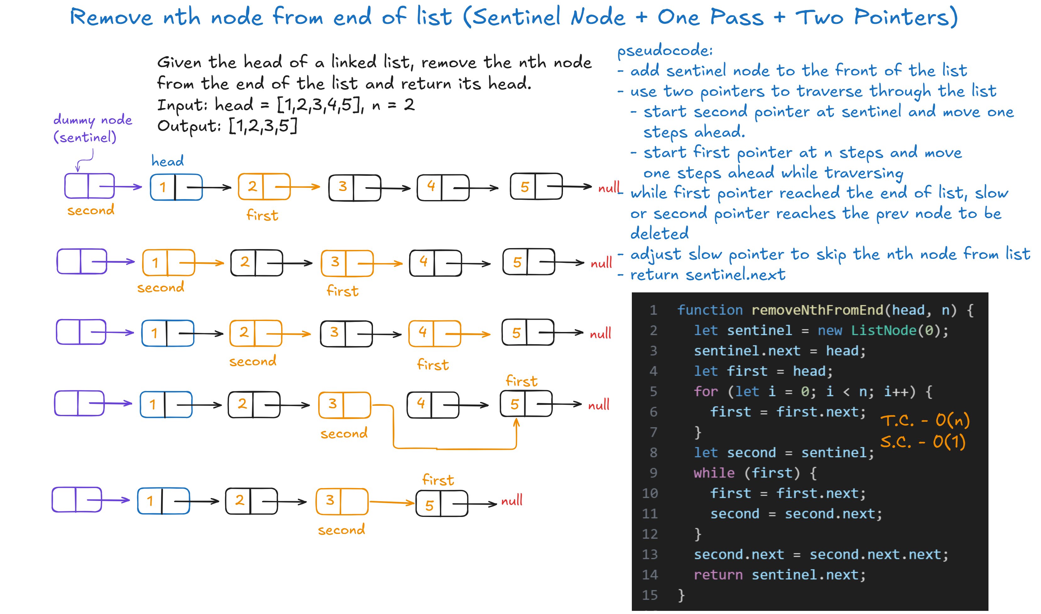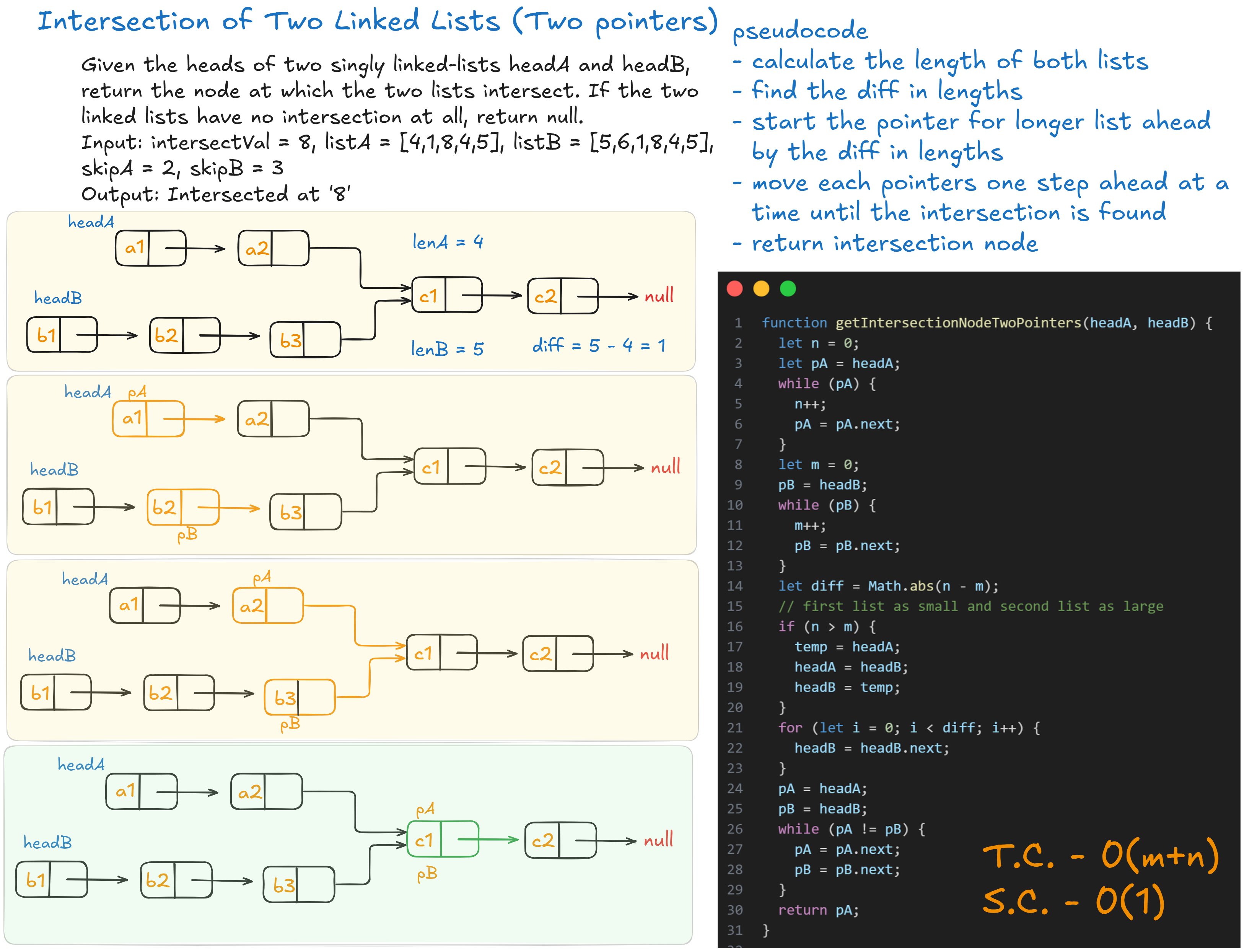 • Applied two-pointer technique to detect intersection of linked lists