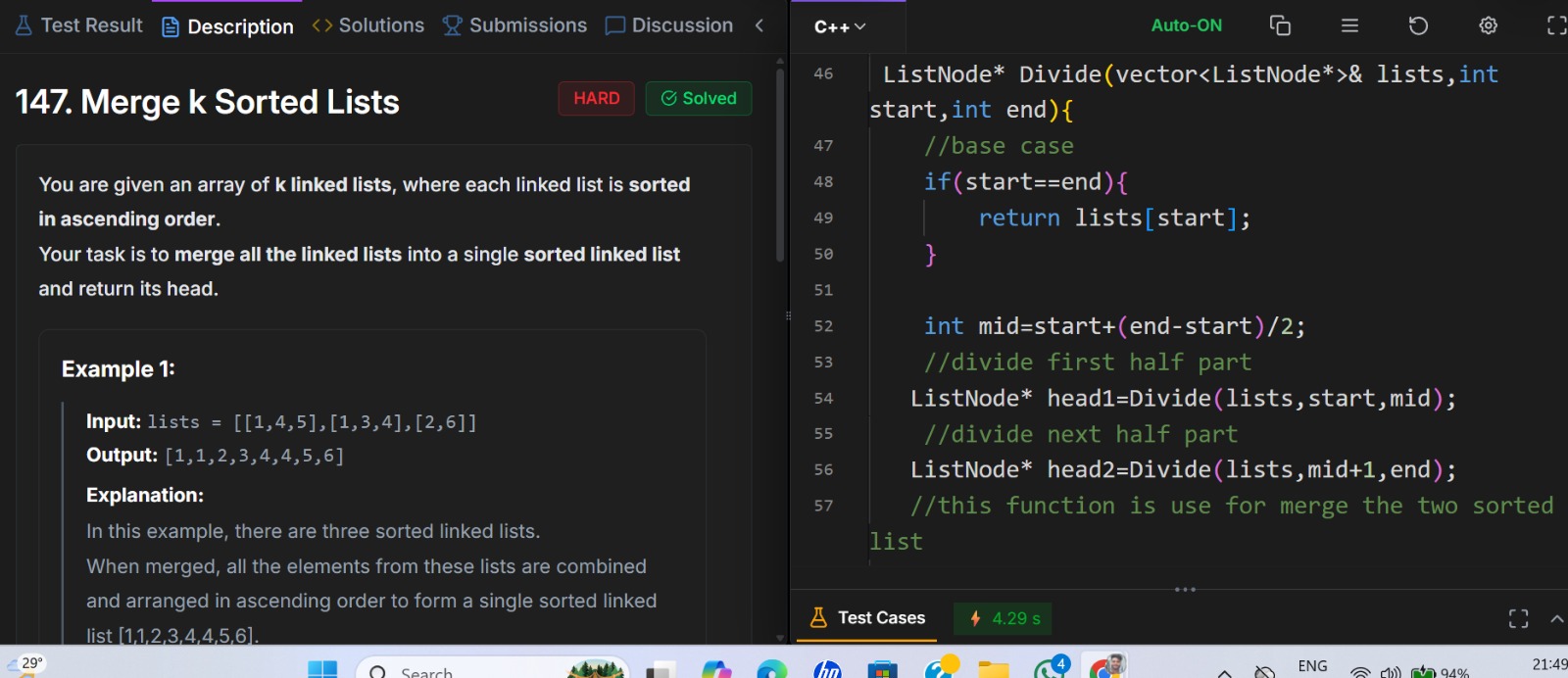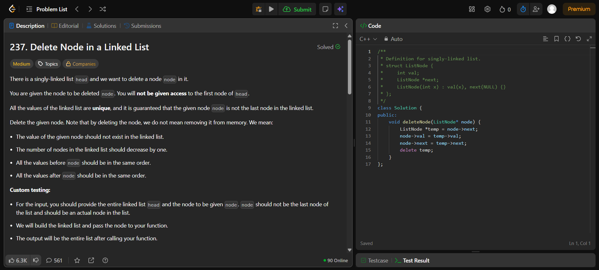 • Practiced subtraction of two numbers represented as linked lists