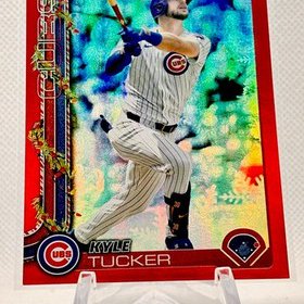 From ebay.com2025 Topps Holiday Kyle Tucker Red Metallic Holiday Parallel 09/10 #H26 - Chicago Cubs/Los Angeles Dodgers.