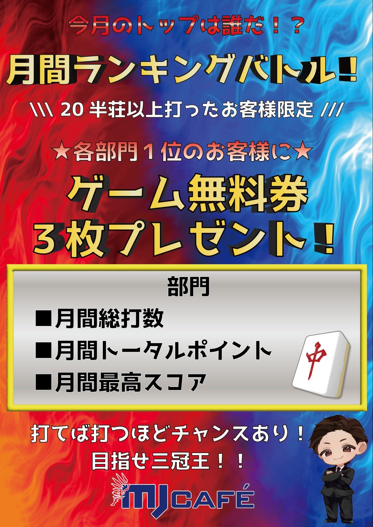 MJcafe' @MJcafe_tsukuba · 4d ✨✨MJ CAFE ノーレートフリー、3月度 月間ランキングバトル✨✨ ❤️🔥規定打数20半荘❤️🔥 3月も残り1週間🐣 是非みなさまトライしてみてください❣️❣️🤗 #麻雀 #Mリーグルール #ノーレートフリー #MJCa@fe @kumanekoleasot6 1 4 653